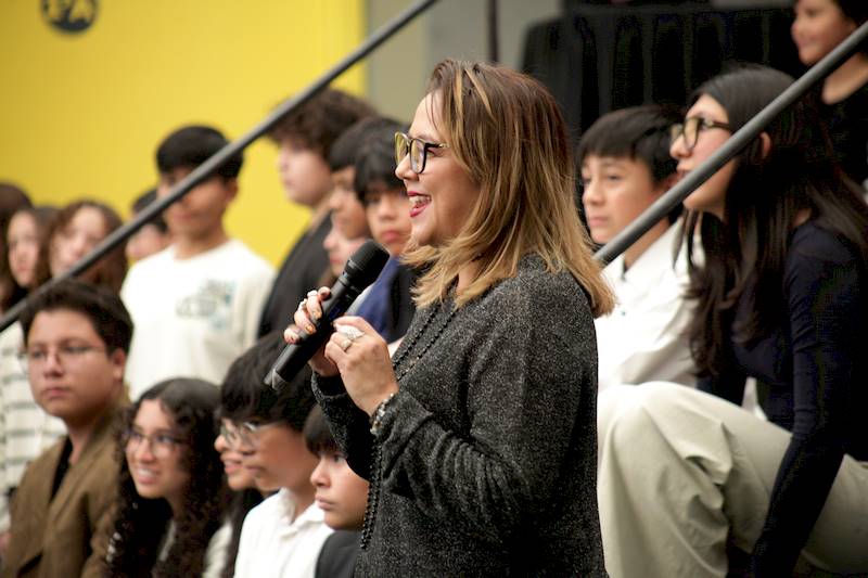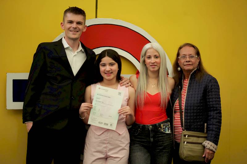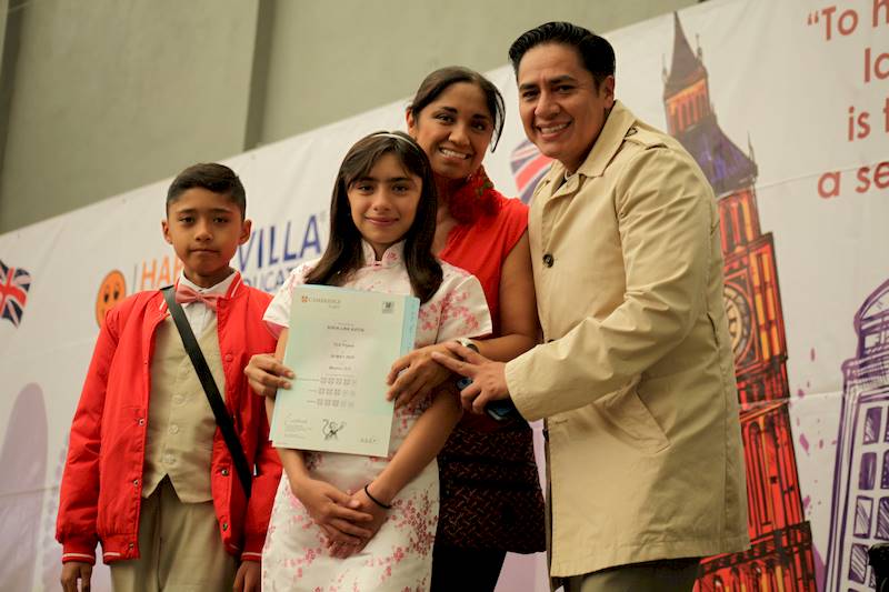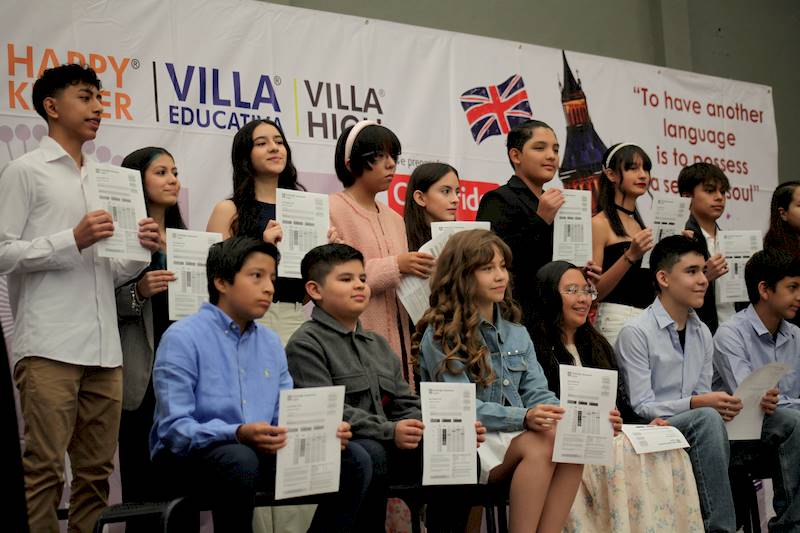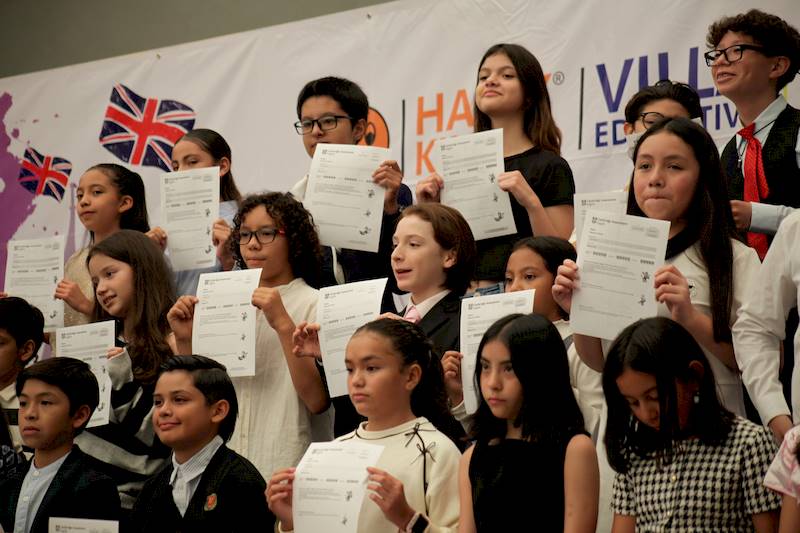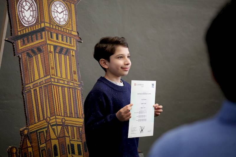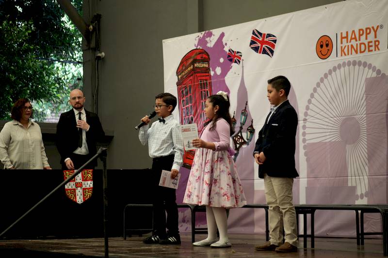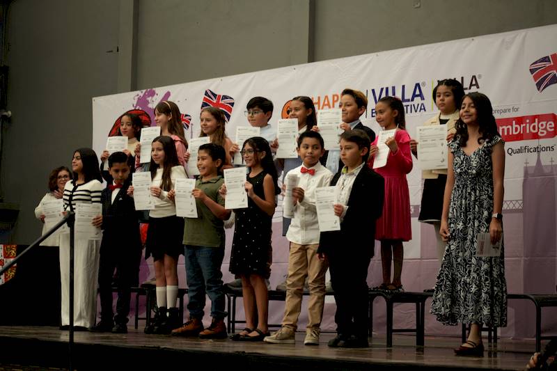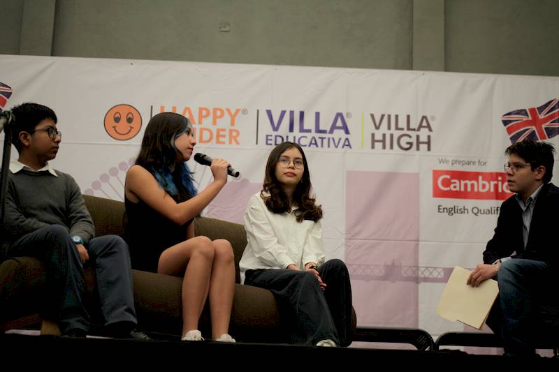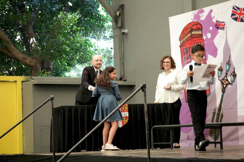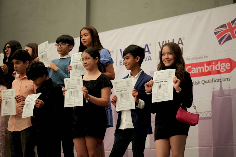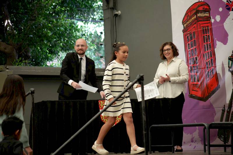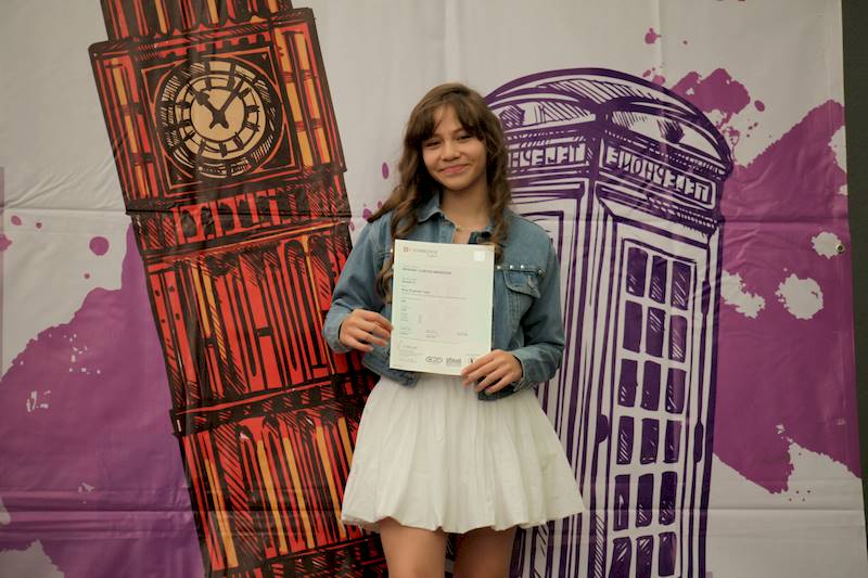 Un momento destacado de la ceremonia fue “The Cambridge Show”, una dinámica al estilo programa de entrevistas en la que se les preguntó a los estudiantes sobre sus pensamientos y emociones durante la preparación y realización del examen. Un enorme aplauso para nuestros participantes: su fluidez en inglés realmente ayudó a que la escena se sintiera lo más auténtica posible.