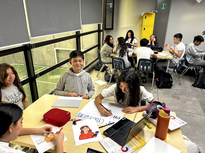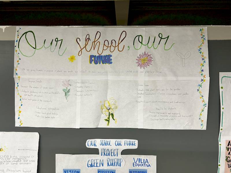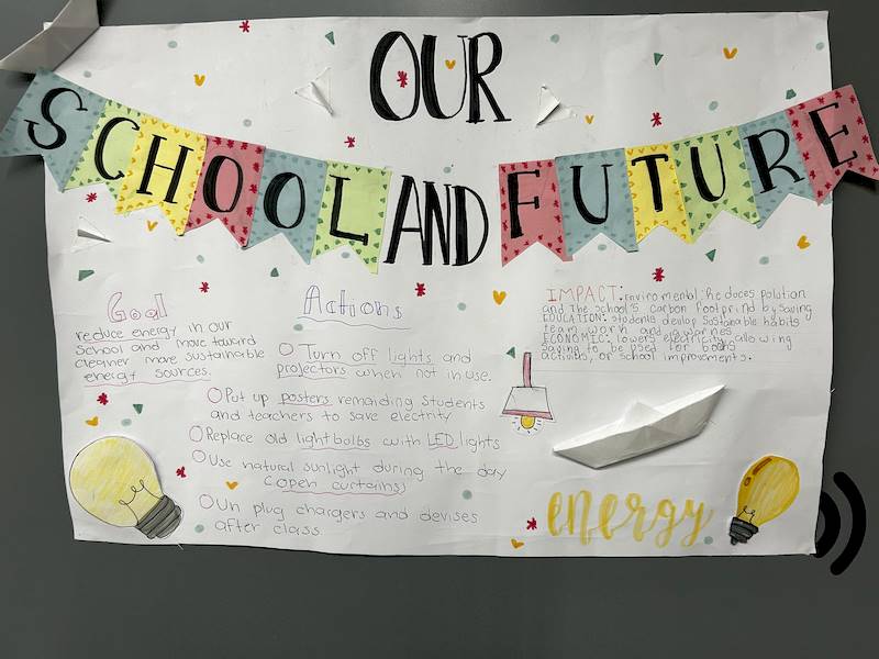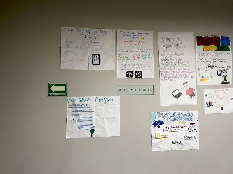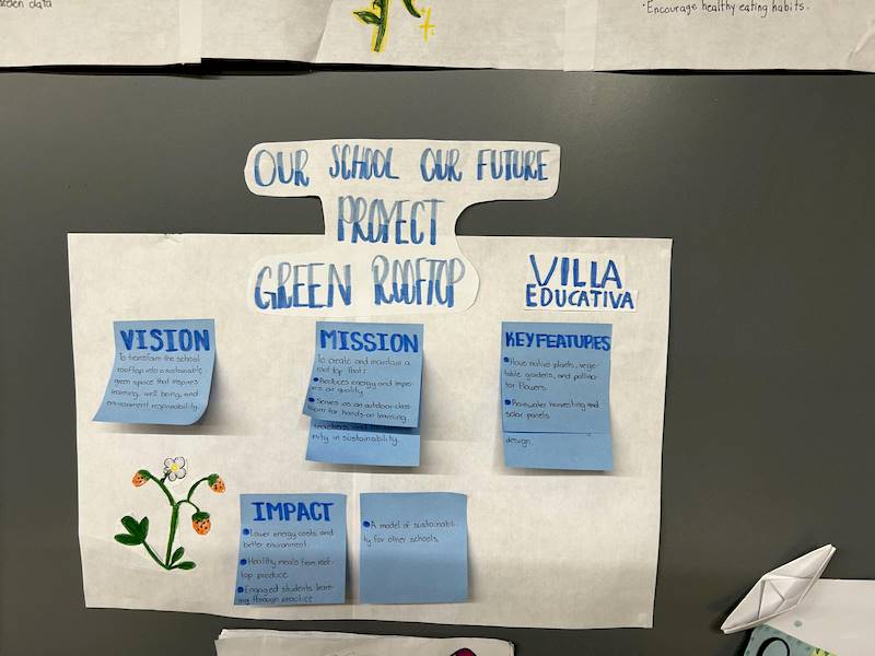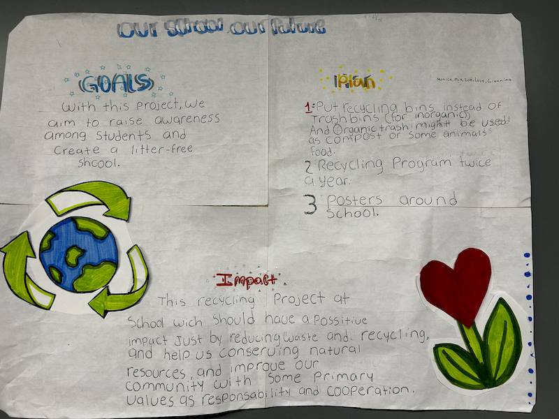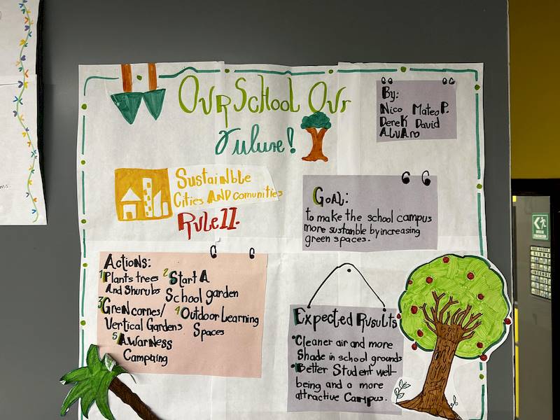 Trabajando en pequeños grupos, los estudiantes exploraron el Objetivo 11 de la ONU, relacionado con la sostenibilidad en su propia comunidad. Esta actividad fue clave para prepararlos para el futuro, convirtiéndolos en solucionadores activos de problemas. ¡Desarrollaron una propuesta única para mejorar su escuela!