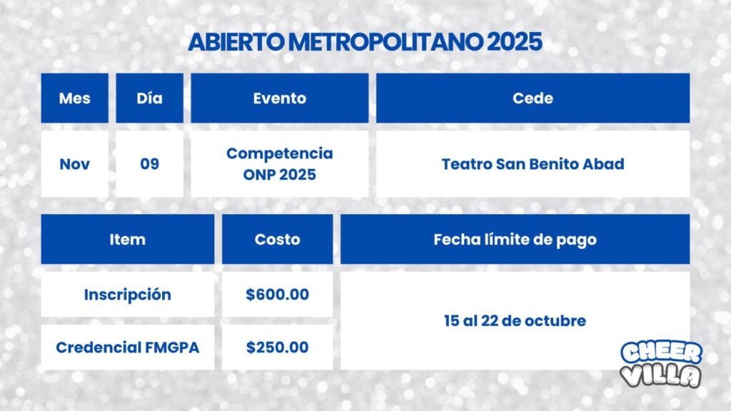 El precio de competencia por alumna es de $600 pesos, mismo que se deberá pagar en caja en efectivo a partir del día 15 octubre.