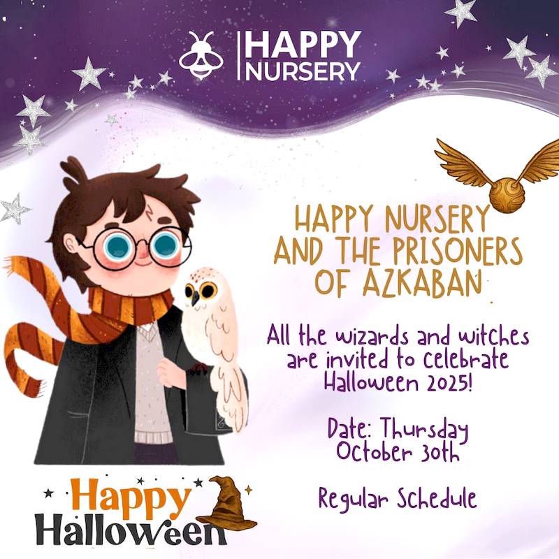This Thursday, October 30th, we’ll be celebrating Halloween with a magical Harry Potter-themed party at Happy Nursery! Children are invited to come in costume—Harry Potter or any other theme. Imagination is always welcome!