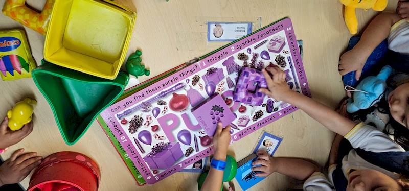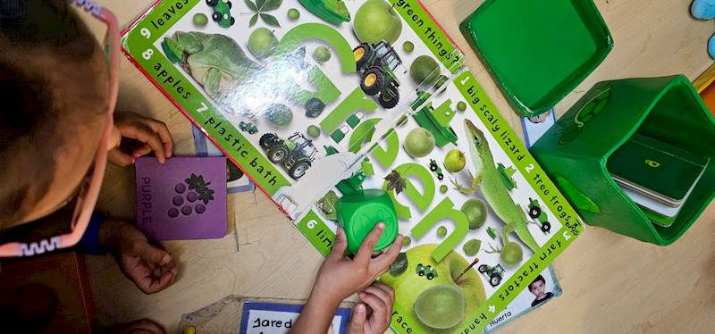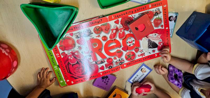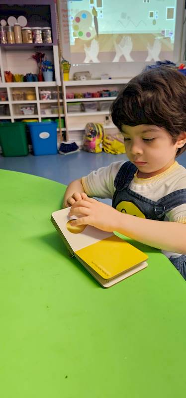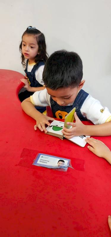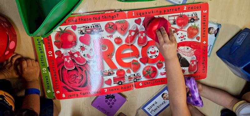 In the next part of the activity, students explored colored books, looking at their images and sharing objects of the same color that they knew from their environment.