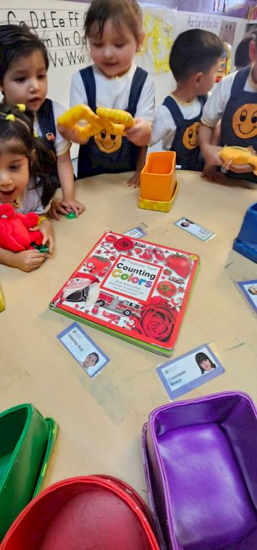 Finally, the little ones had the opportunity to explore and classify real objects of different colors, strengthening their observation, attention, and ability to group elements according to their characteristics.