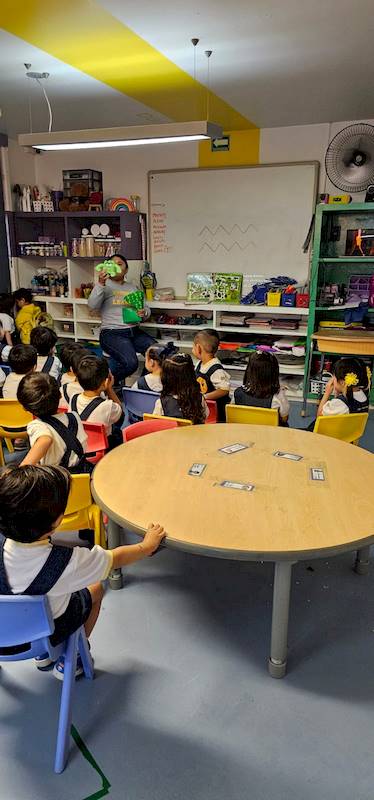 Después, les leí un cuento mágico, del cual iban apareciendo sorpresas relacionadas con cada color, lo que despertó la emoción y la curiosidad de todos. En la siguiente parte de la actividad, los alumnos exploraron libros de colores, observando sus imágenes y compartiendo objetos del mismo color que conocían en su entorno.