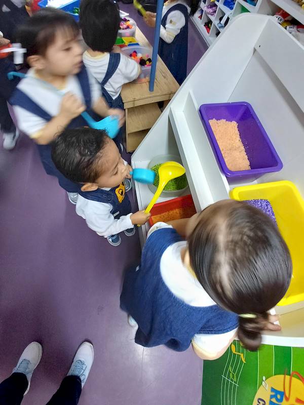 I prepared activities for my kids to start comprehending the concept of sharing. They had to share ice cream scoops with the kids who didn’t have any. Children had to ask Miss Carlie to be kind and share her ice cream with them while reading the story. We also went to the Light Lab to make our ice cream with different materials.