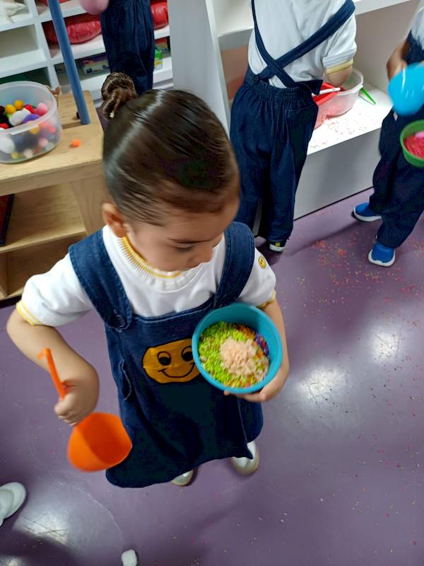 La última actividad, se trató de un juego de roles: los niños vendieron helados en la heladería, donde prepararon, sirvieron y degustaron deliciosos helados. Fuimos al playroom para realizar actividad, donde los niños experimentaron diferentes situaciones en las que, en algún momento, tuvieron que compartir los materiales para seguir jugando. Fue un reto para ellos, ¡pero al final lo lograron!