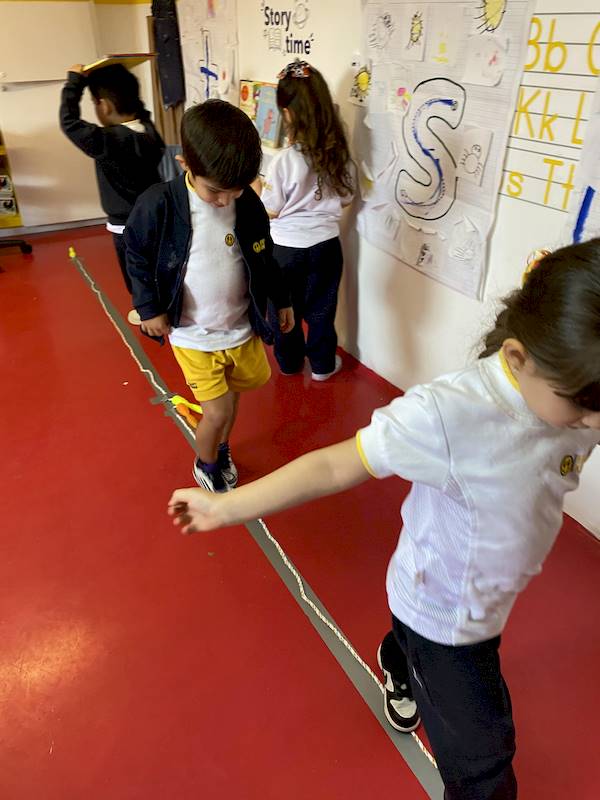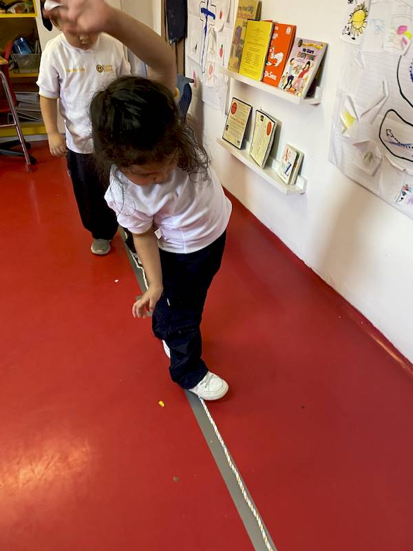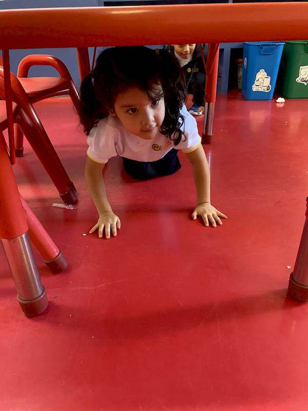 To strengthen these abilities in the classroom, our kids took a challenge that allowed them to test both their physical and emotional skills. They walked along a “tightrope,” crawled through a tunnel under the tables, climbed over chairs, and worked together to hold a balloon between their bellies without using their hands.