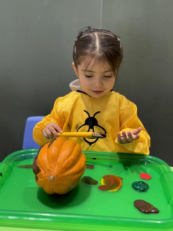 En el área creativa, cada niño pintó su propia calabaza y elaboró un pavo decorado con fotografías de todas las cosas por las que dan gracias: su familia, sus juguetes, sus amigos, su comida y sus momentos favoritos.