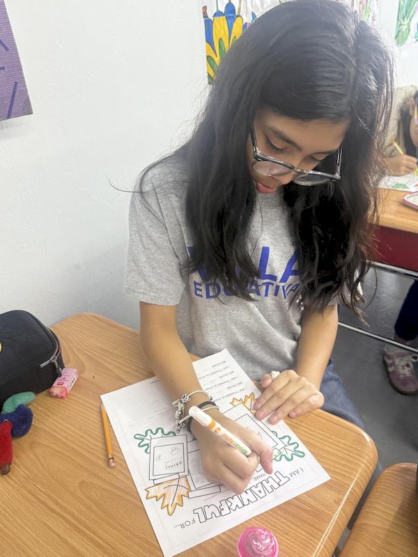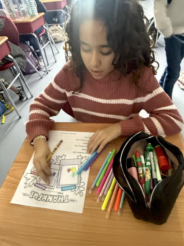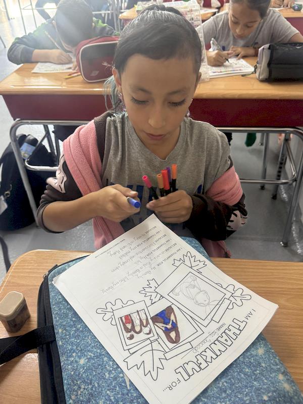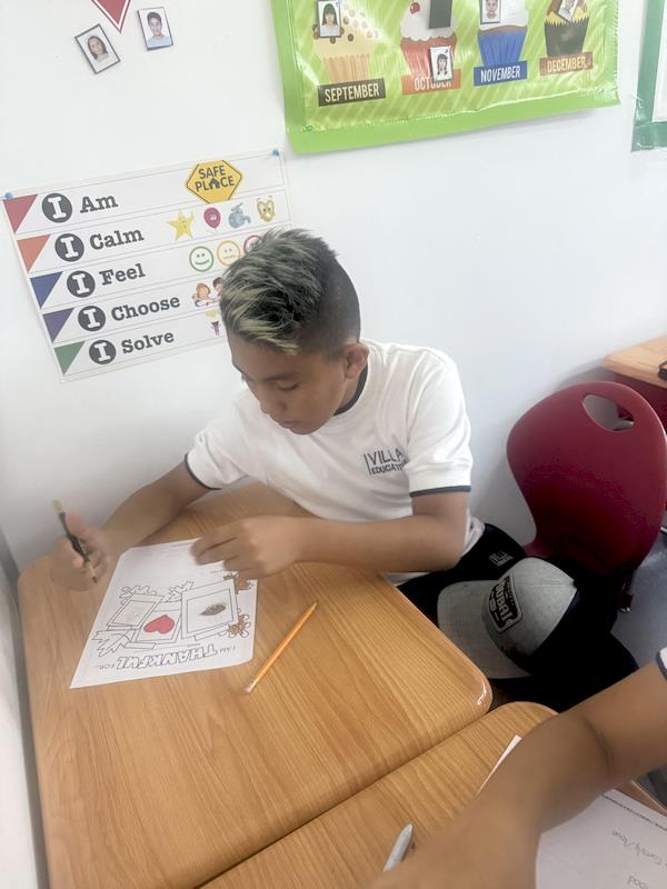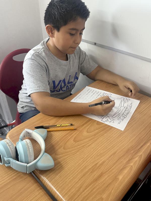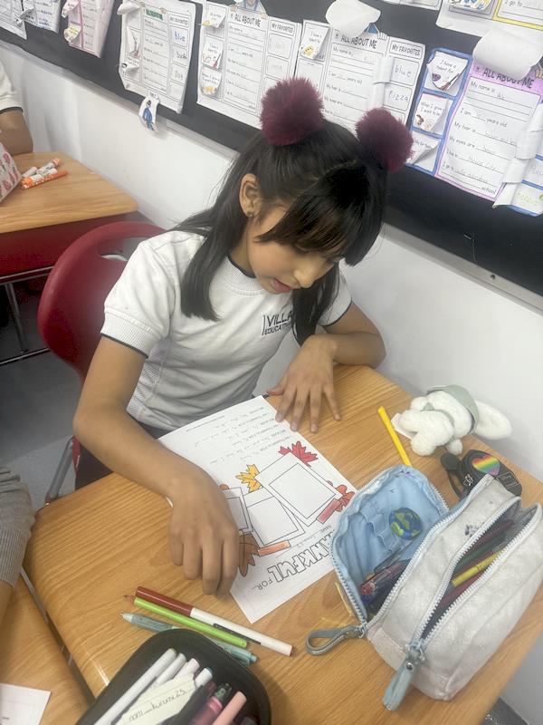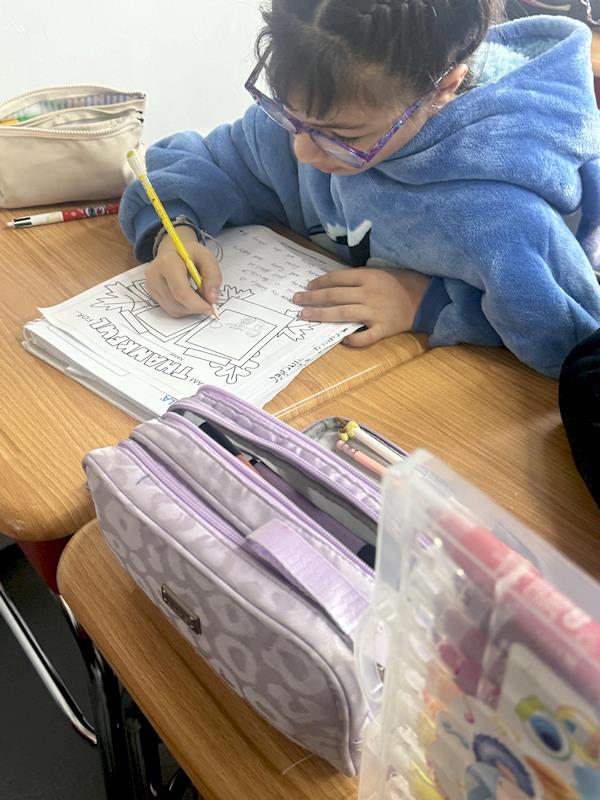 The fifth-grade Thanksgiving activity was a meaningful and creative experience that allowed students to reflect on gratitude in a personal and thoughtful way. Each student was asked to write three things they were thankful for and then illustrate them. This simple task encouraged deep reflection, helping students recognize the people, moments, and experiences that bring value to their lives.
