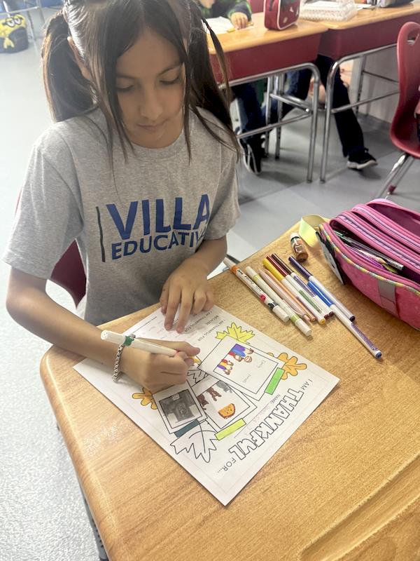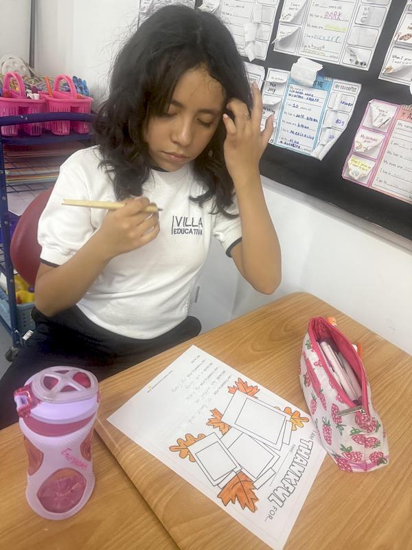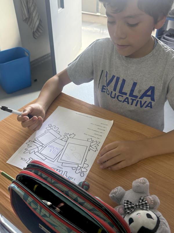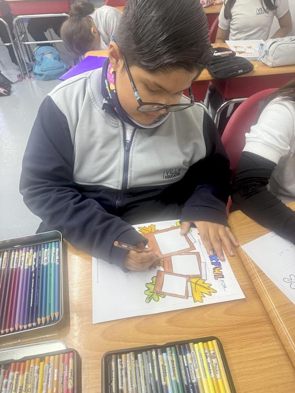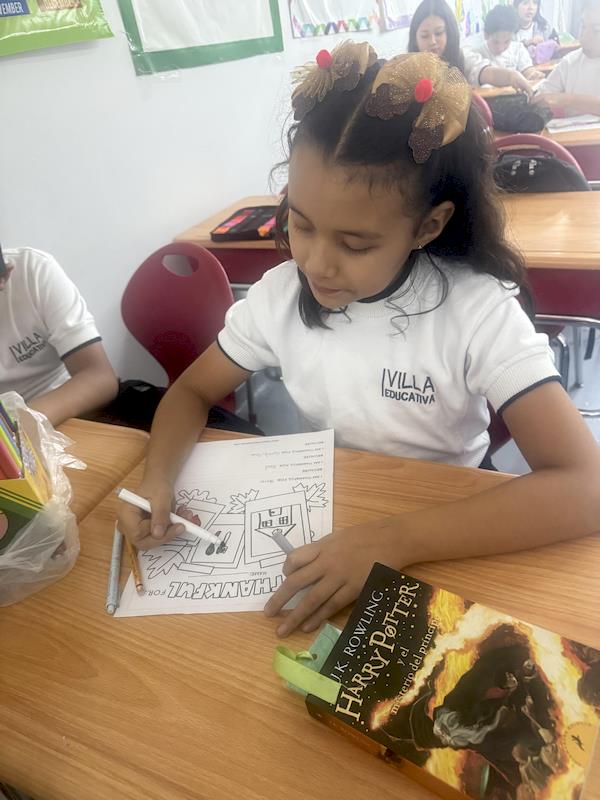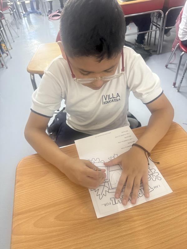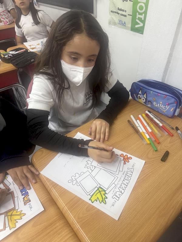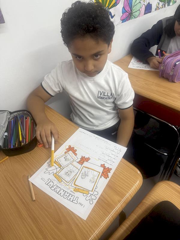 La actividad de Acción de Gracias realizada con los alumnos de quinto grado fue una experiencia significativa y creativa que les permitió reflexionar sobre la gratitud de manera personal y consciente. A cada estudiante se le pidió escribir tres cosas por las que estaba agradecido y luego ilustrarlas. Esta sencilla tarea fomentó una reflexión profunda, ayudándolos a reconocer a las personas, momentos y experiencias que dan valor a sus vidas.