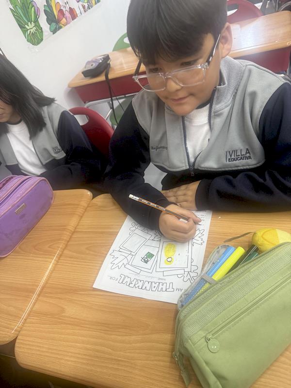 A lo largo de la actividad, los estudiantes mostraron un compromiso genuino. Muchos expresaron gratitud por sus familias, amigos, maestros e incluso por pequeños pero importantes aspectos de la vida diaria, como sus mascotas, pasatiempos o su buena salud. Sus ilustraciones añadieron un toque especial, mostrando sus ideas con color, imaginación y emoción. Algunos dibujos fueron divertidos, otros emotivos, y todos evidenciaron cómo cada niño comprende la gratitud desde su propia perspectiva.