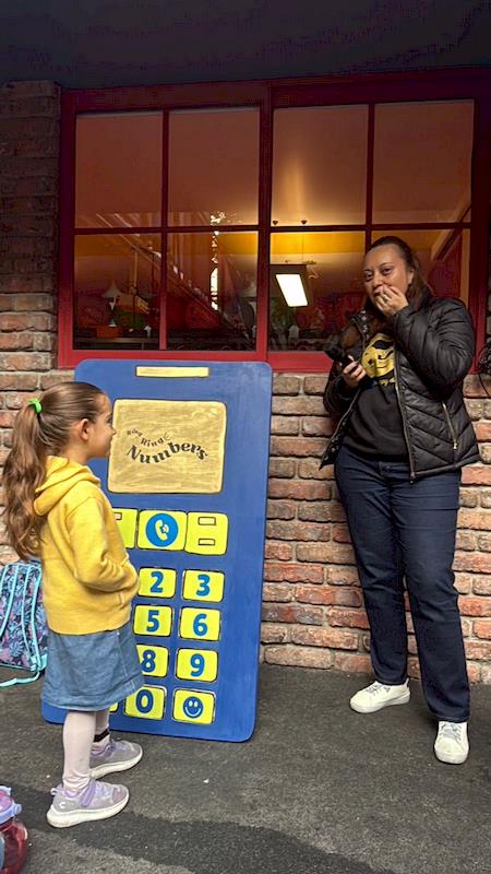 During the activity, children will use a big cell phone. The teacher will say a number sequence, and the child will tap those numbers on the phone. The magical part comes next: when they press the correct numbers, they’ll hear a surprise audio message recorded by their parents! This wonderful combination of learning and emotional warmth makes the experience truly memorable and motivating.