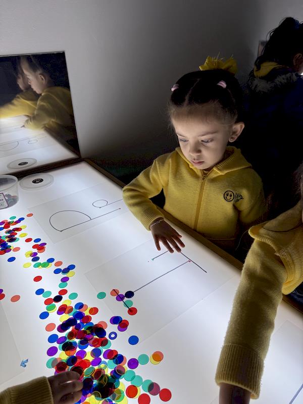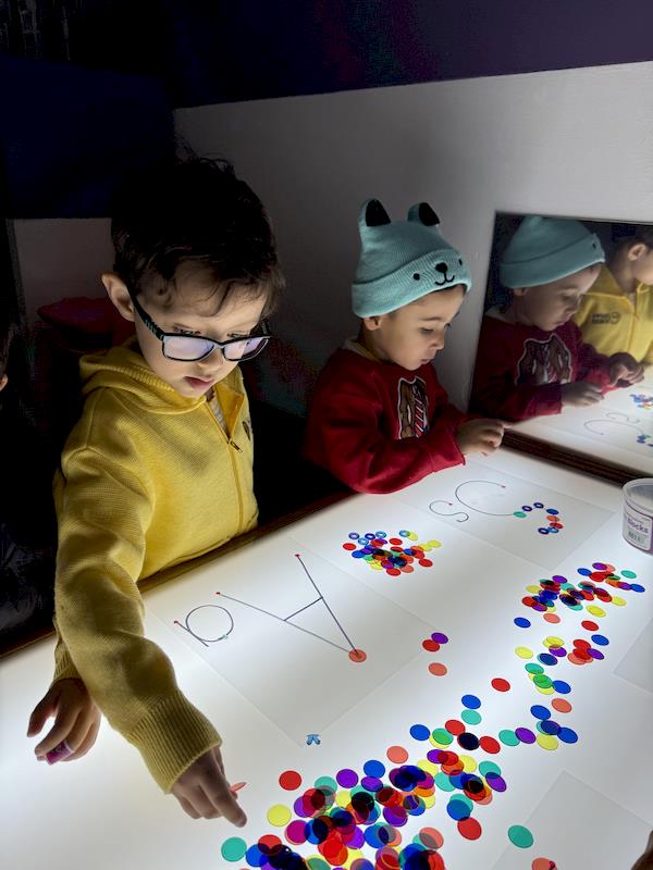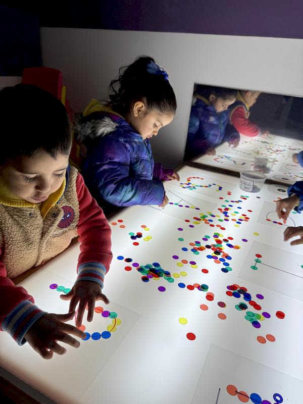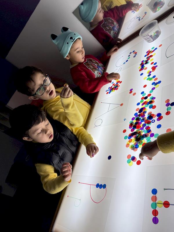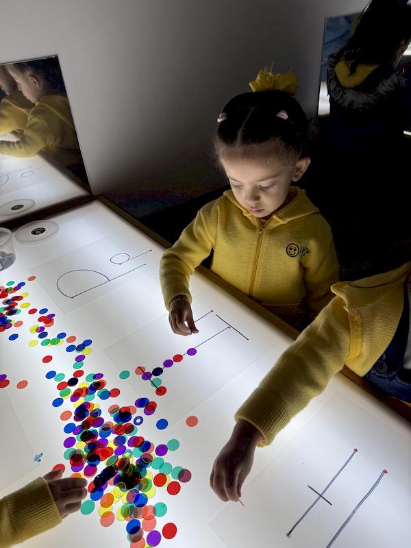 Last week we went to the Light Lab to review the letters from the first block we have been working on for these months. The kids were very excited because the Light Lab is always a special place for them, as it is full of colors and various materials.