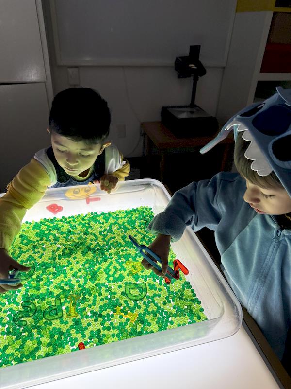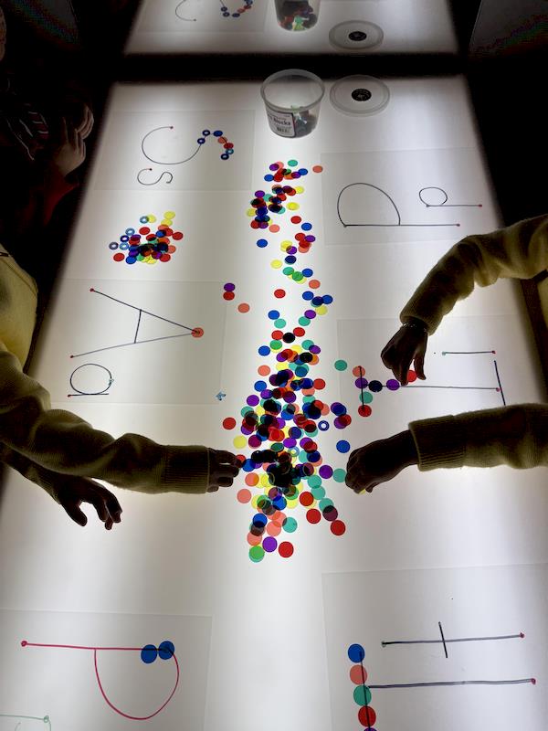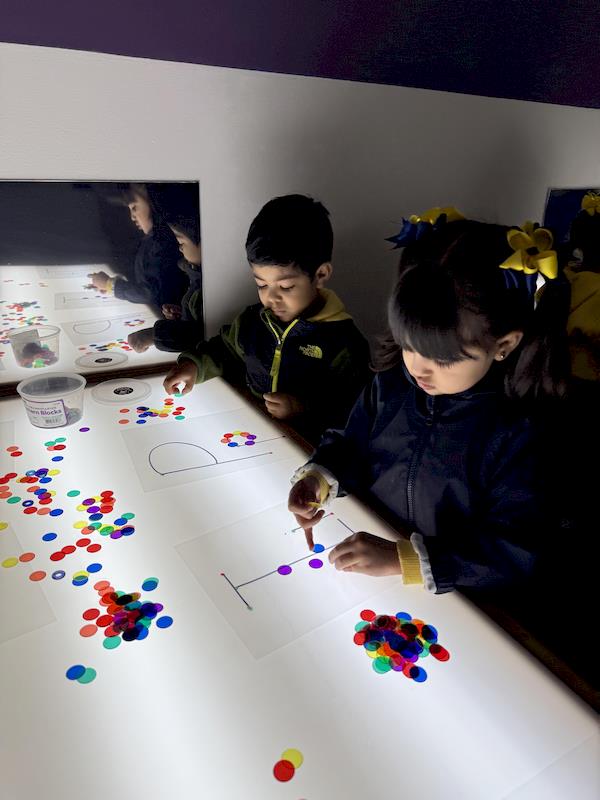 Tracing Station: Students followed each letter using materials on the light table; they had to use their grip.