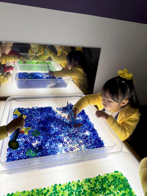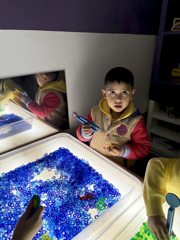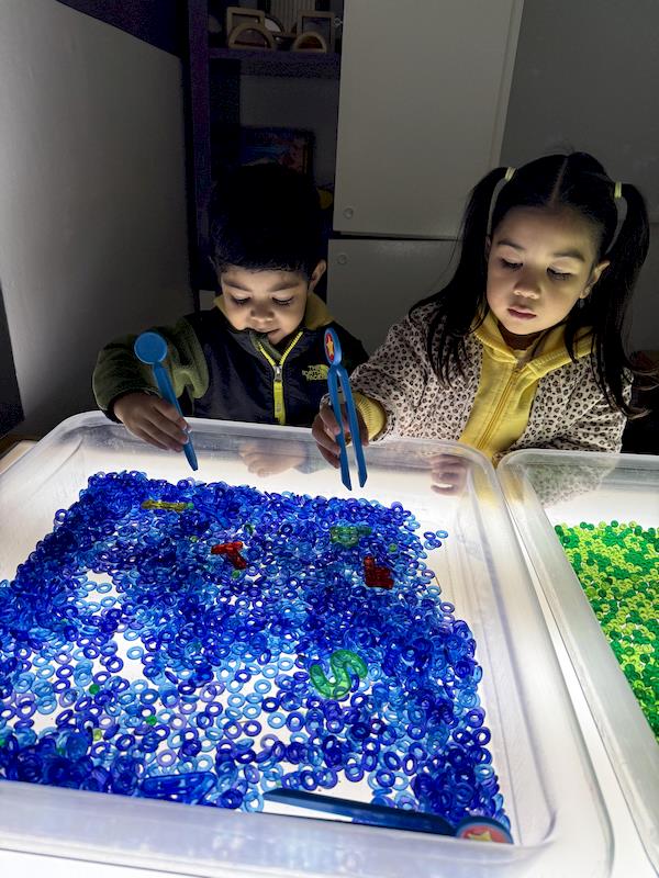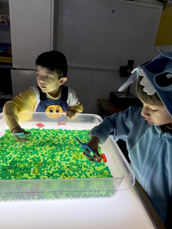 Durante esta clase continuamos desarrollando su motricidad fina. Esta actividad fue increíble, y los niños estuvieron totalmente involucrados de principio a fin. Para ellos, trabajar en el Laboratorio de luz siempre es fantástico porque disfrutan mucho este espacio.