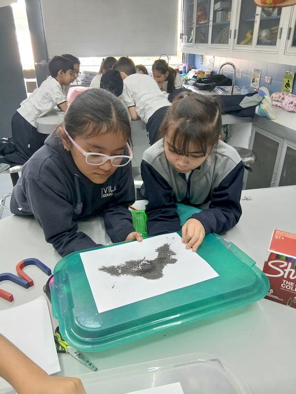 Los estudiantes aprendieron sobre los campos magnéticos, cómo se crean y cómo interactúan entre sí. Tuvieron una actividad en la que pudieron observar cómo se ven los campos magnéticos con imanes de diferentes formas utilizando limaduras de hierro. También exploraron el laboratorio y la escuela en búsqueda de objetos magnéticos.