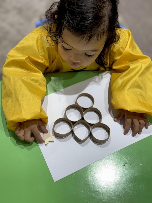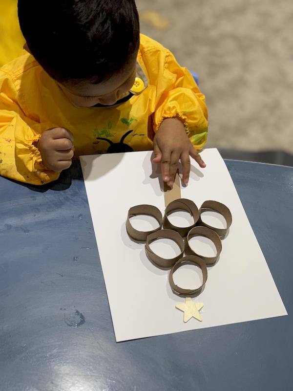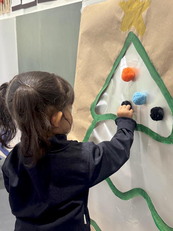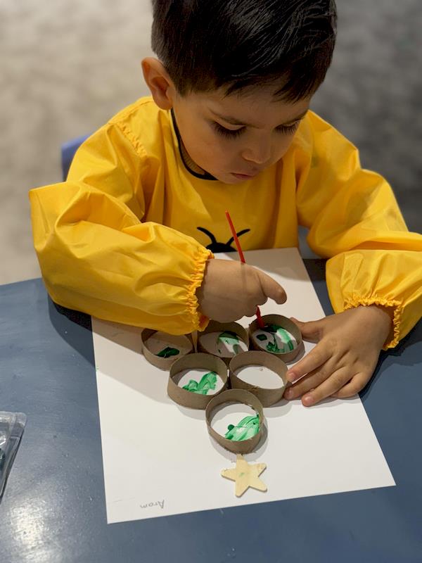 Next, we enjoyed another fun activity: creating a second Christmas tree using paper rolls. The children glued, painted, and decorated their trees, strengthening their hand–eye coordination as they turned simple materials into a beautiful Christmas creation.