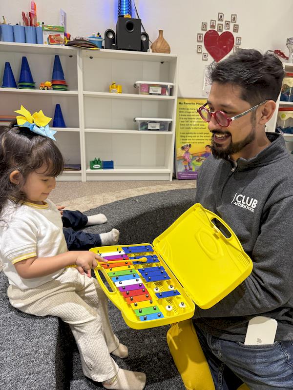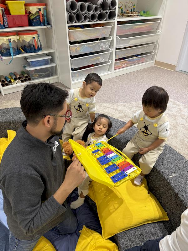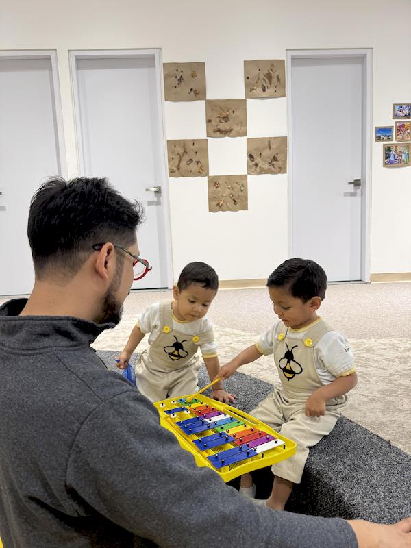 También exploramos el xilófono: descubrimos que cada color produce un sonido distinto y lo utilizamos para crear patrones musicales, reforzando los colores y nuevas palabras.