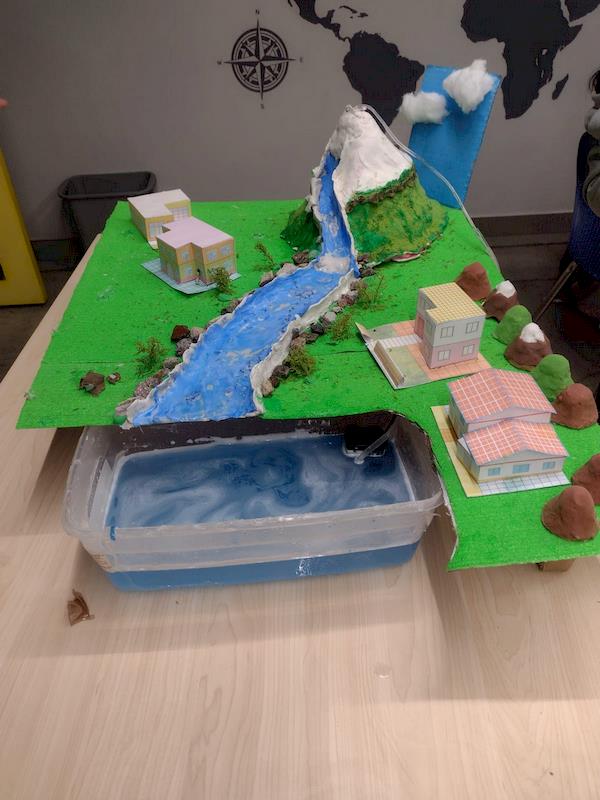 Como parte del proyecto, los alumnos realizaron una simulación de una cuenca hidrográfica, actividad que les permitió expresar su creatividad, fortalecer el liderazgo y aprender a trabajar en equipo. Esta experiencia práctica facilitó la comprensión del recorrido del agua y de su papel en la vida diaria.
