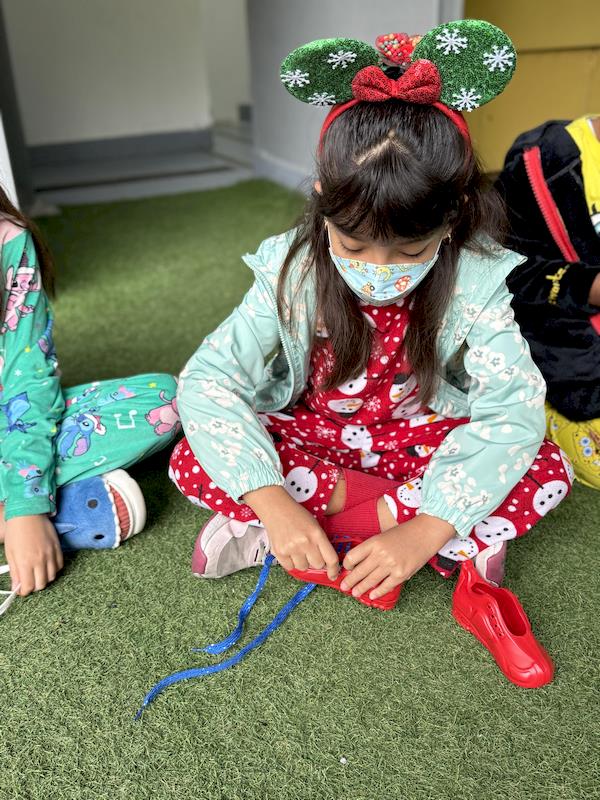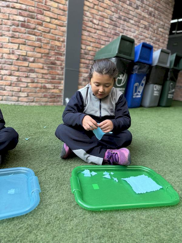 Los alumnos de segundo grado realizaron un rally con tres estaciones en el que pusieron en práctica su motricidad fina. En la primera estación debían rasgar papel crepé; en la segunda, recortar con tijeras diferentes formas; y en la tercera, colocar las agujetas en los tenis y amarrarlas. Cada actividad tenía un tiempo determinado y, al finalizar, los equipos rotaban para continuar con la siguiente.