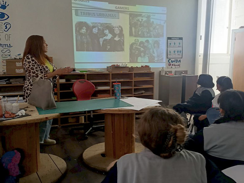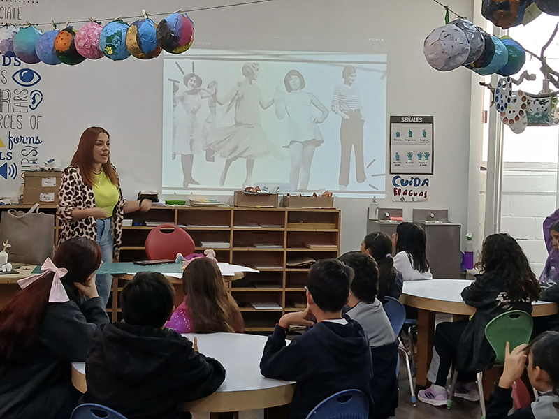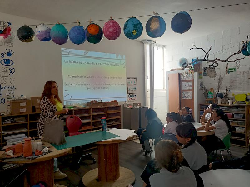 Gabriela también habló sobre diversos estilos de moda, mostrando cómo los diseñadores utilizan colores, formas y telas para comunicar ideas. Sus ejemplos ayudaron a los estudiantes a comprender que la moda es creativa y expresiva, y que permite a las personas compartir su identidad a través de lo que usan.