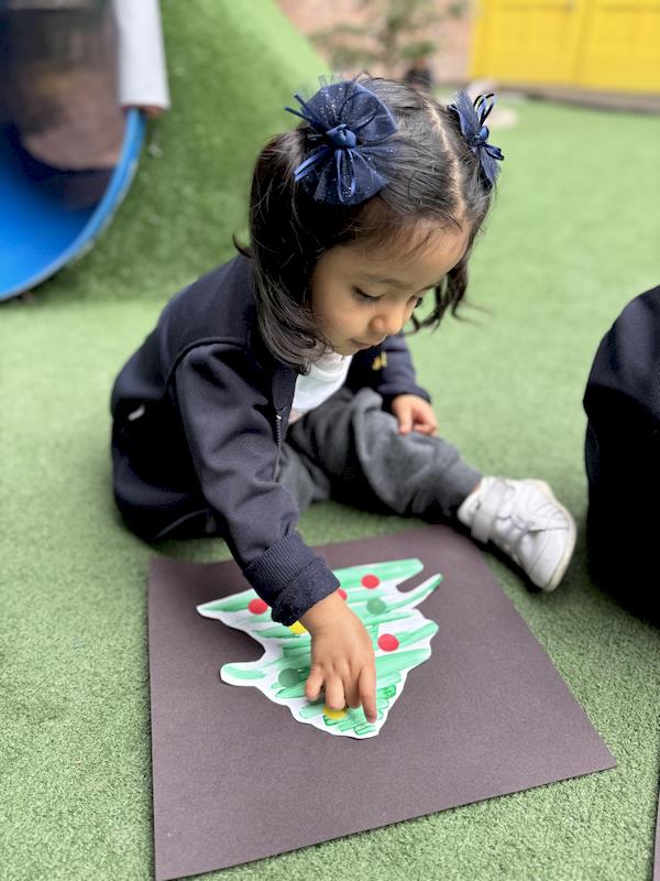 As part of our Christmas activity, the students created their own Christmas trees using green paint and stickers. This activity not only helped reinforce Christmas-related vocabulary but also encouraged each child’s creativity, making every tree unique and special.