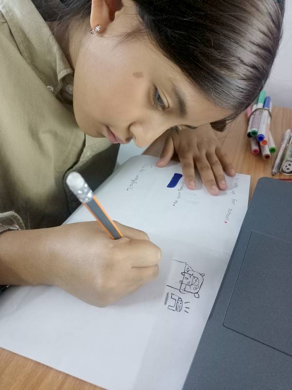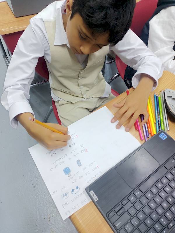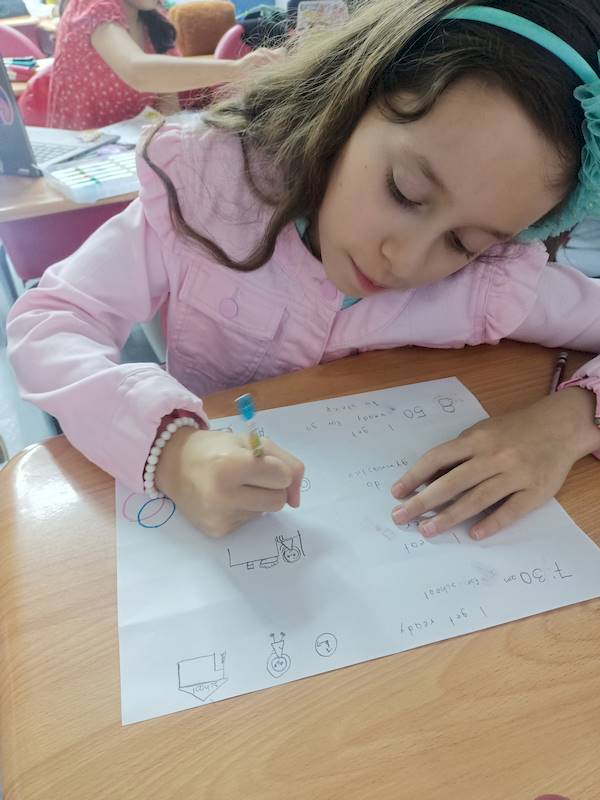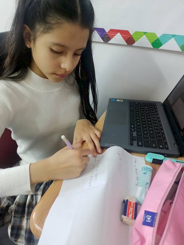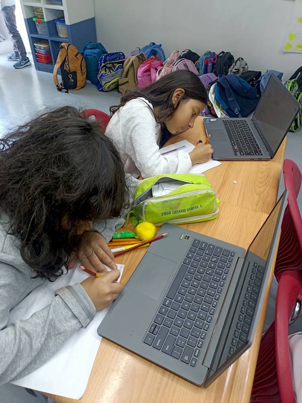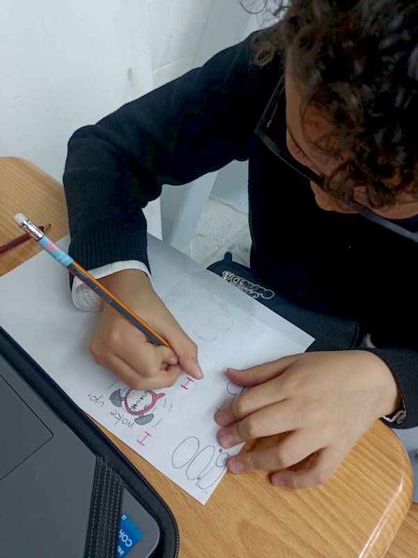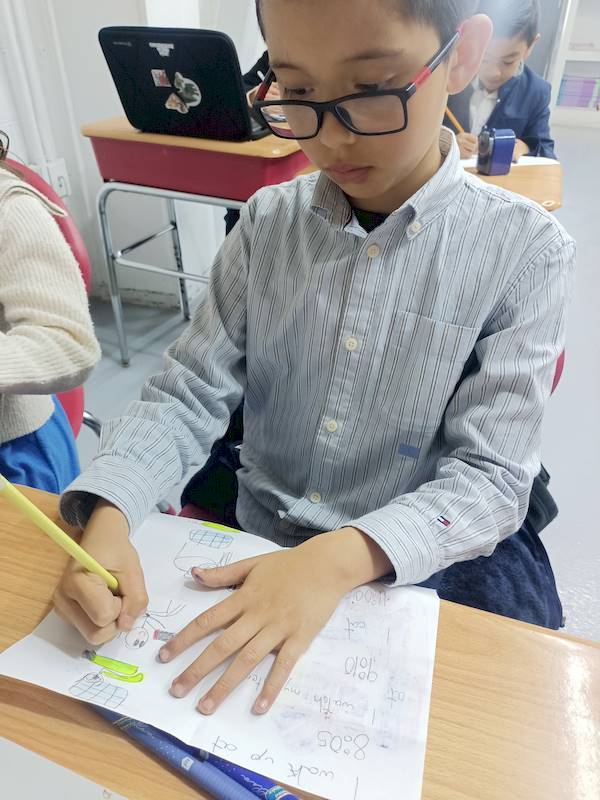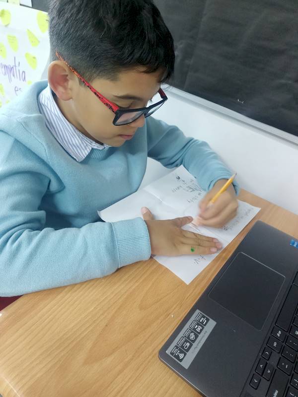 Durante la actividad, los alumnos escribieron oraciones afirmativas utilizando el Presente Simple para describir acciones habituales y actividades cotidianas. Además, incorporaron dibujos y representaciones visuales como apoyo al lenguaje escrito para reforzar la comprensión. Esta propuesta fomenta la práctica gramatical contextualizada, estimula la creatividad y fortalece el desarrollo de las habilidades de escritura y la conciencia lingüística.