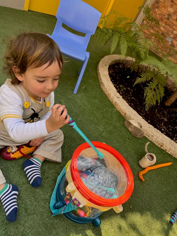 En esta ocasión, la clase fue diferente: salimos al patio y lo transformamos en un pequeño jardín musical, donde el movimiento, la exploración y el aprendizaje se vivieron al aire libre.
