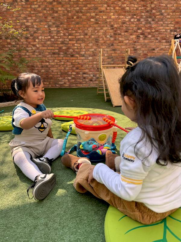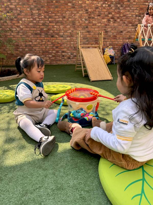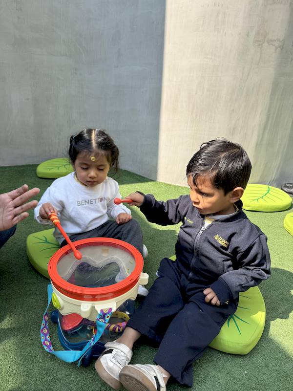 En Happy Nursery, los niños y niñas exploraron el ritmo y la música mientras aprendían una nueva canción, utilizando sus deditos para marcar pulsos y pequeños patrones. A través del juego, fortalecieron la coordinación, la atención y el disfrute por la música.