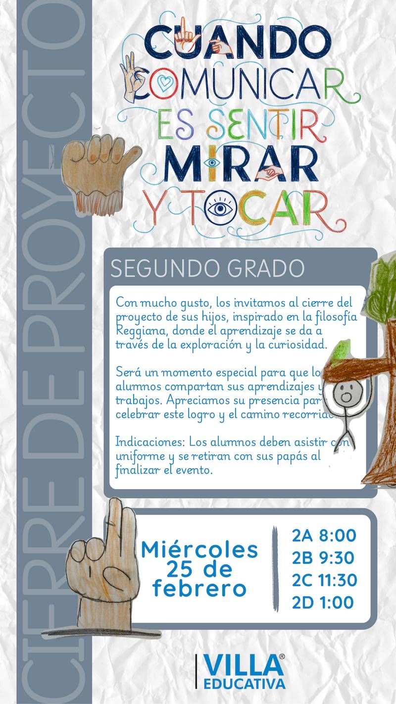 Martes 24 de febrero: 6A (8:00) | 6B (9:30) | 6C (11:30) | 6D (1:00) - 2º Grado: «Cuando comunicar es sentir, mirar y tocar»