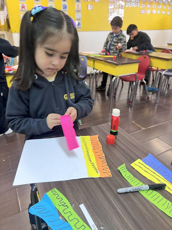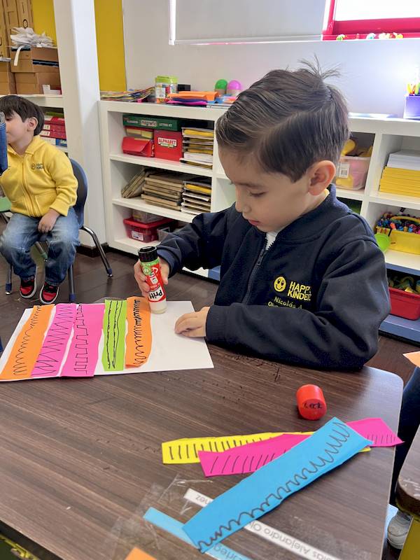 Durante estas semanas hemos trabajado con nuestros alumnos en diferentes habilidades que favorecen el control de su cuerpo y la direccionalidad de sus trazos, con la intención de facilitar el proceso de escritura. Por lo que esta semana propusimos realizar un collage de trazos en los que cada pequeño hizo una producción del trazo sugerido respetando la direccionalidad propuesta.