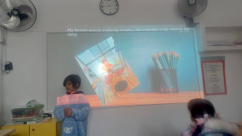 This activity was intentionally designed to develop essential cognitive and linguistic abilities. It was also fun and creative because it allowed students to photograph their favorite activities and explain why they enjoy them. We keep practicing speaking slowly and clearly in front of the class. By combining visual, written, and oral communication, the project ensures that kids strengthen their overall English fluency in a supportive and integrated way.