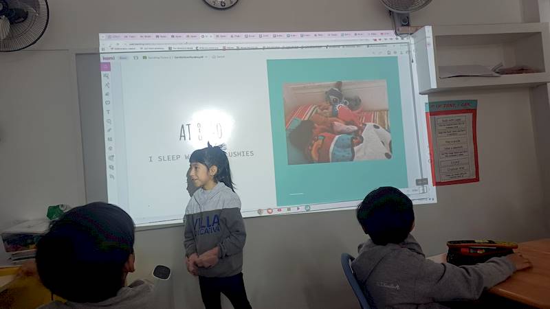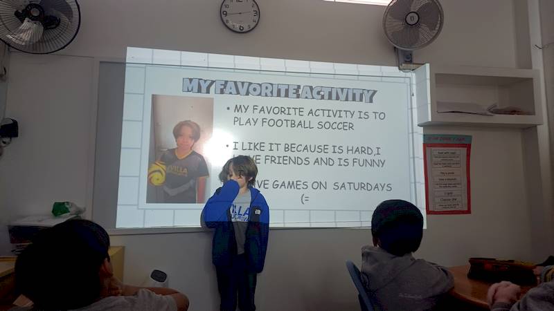Esta actividad fue diseñada intencionalmente para desarrollar habilidades cognitivas y lingüísticas esenciales. También resultó divertida y creativa porque permitió a los estudiantes fotografiar sus actividades favoritas y explicar por qué las disfrutan. Seguimos practicando el hablar lento y claro frente a la clase. Al combinar la comunicación visual, escrita y oral, el proyecto garantiza que los niños fortalezcan su fluidez general en inglés de una manera solidaria e integrada.