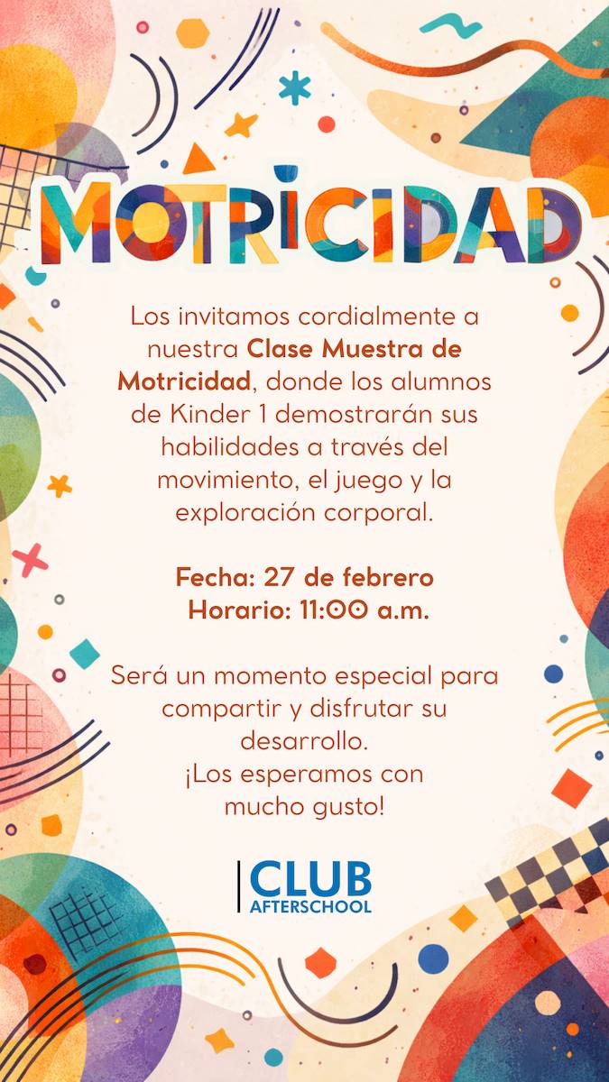 El profesor Alonso León tiene el gusto de invitarlos a su clase abierta de motricidad, donde podrán ver los avances que sus pequeños han tenido durante estos meses.