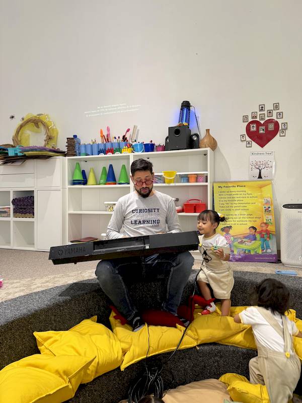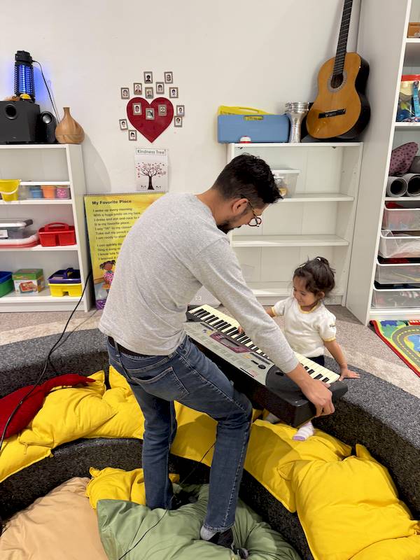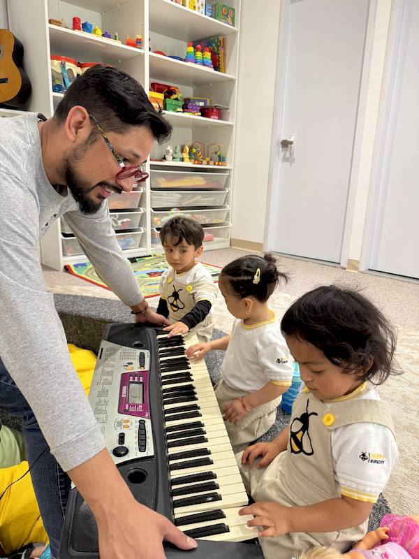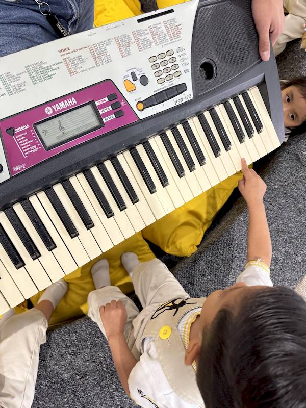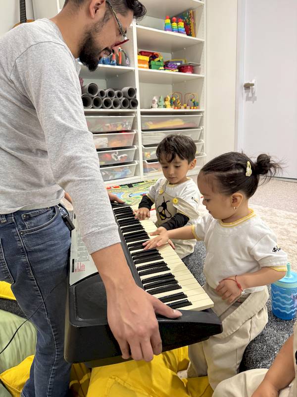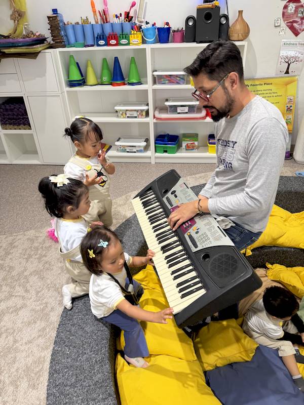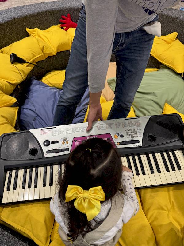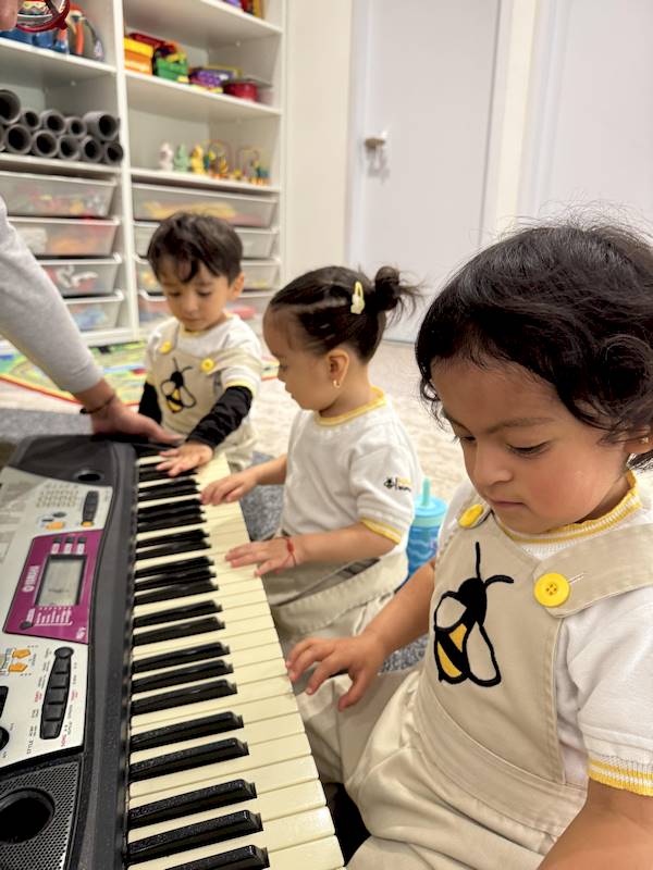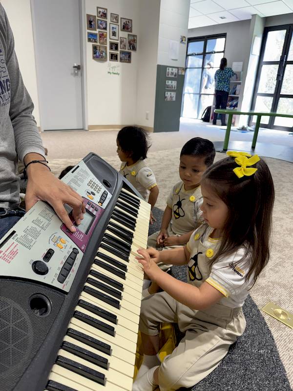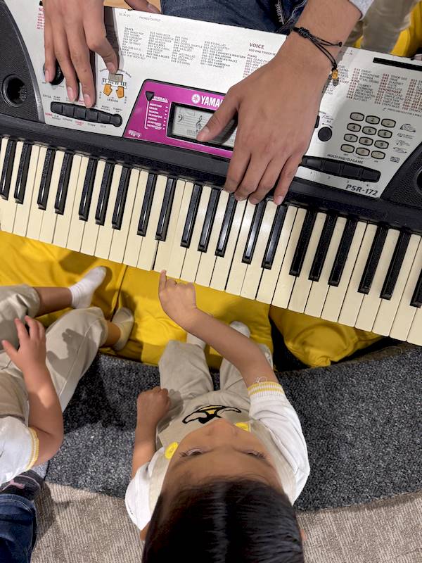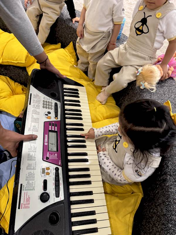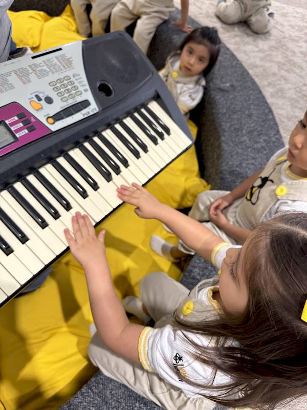 Cada niño tuvo la oportunidad de tocar algunas notas en el piano, explorando los sonidos con curiosidad y alegría. En maternal, cada experiencia sensorial es aprendizaje; la música ayuda a expresar emociones, desarrollar la escucha y fortalecer la confianza.