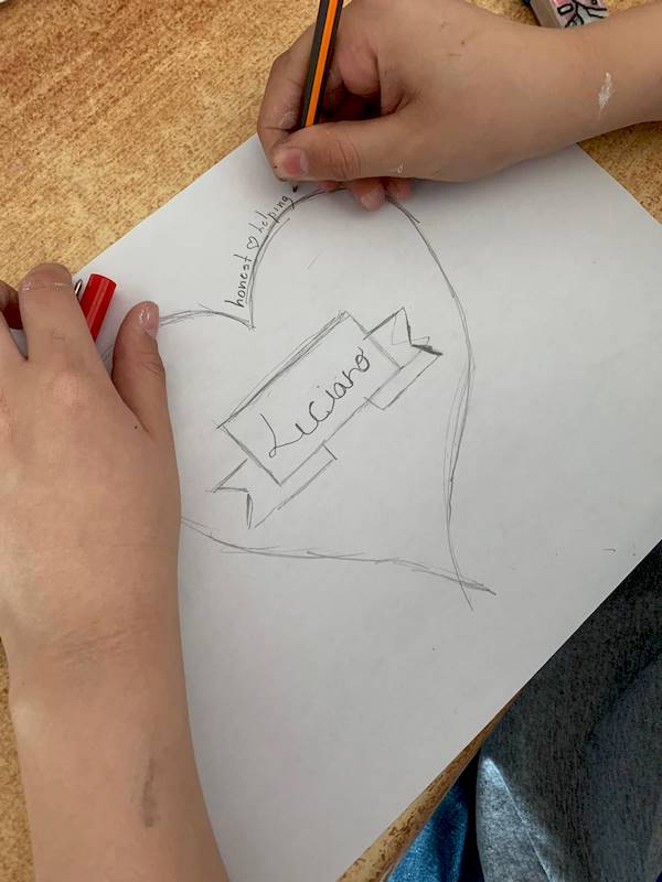 We also reflected on something we often forget: recognizing our own qualities. In Teacher Robert Borges’ Public Speaking class, students created a large heart decorated with colors, patterns, and images that represent who they are. Inside, they wrote adjectives describing their positive qualities, and on the back, a short letter to themselves highlighting their strengths.