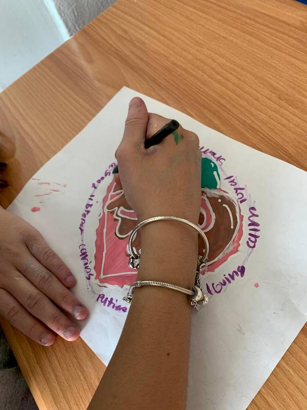 También reflexionamos sobre algo que muchas veces olvidamos: reconocer nuestras propias cualidades. En la clase de Public Speaking del maestro Robert Borges, los alumnos elaboraron un gran corazón decorado con colores, patrones e imágenes que los representan. Dentro escribieron adjetivos que describen sus cualidades positivas y, en la parte de atrás, una pequeña carta para sí mismos reconociendo sus fortalezas.
