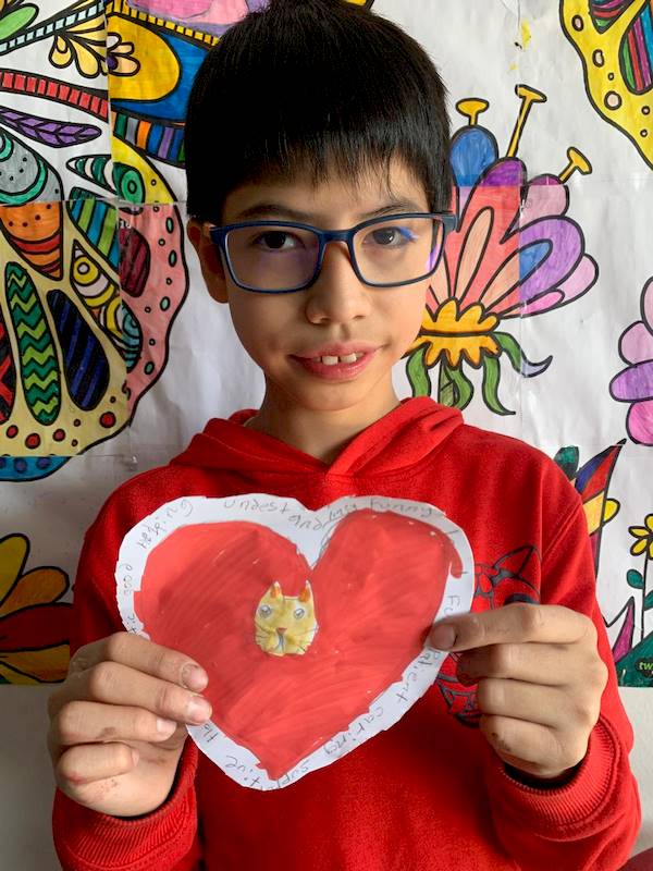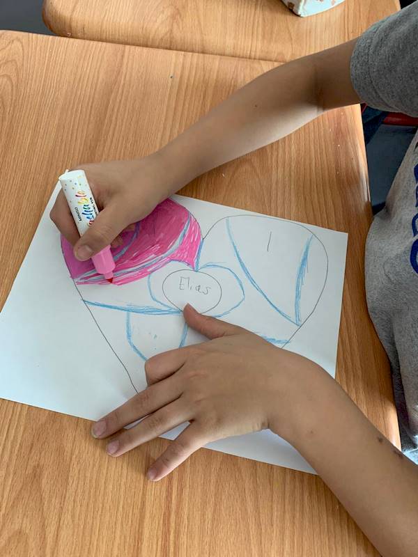 The activity helped students build self-worth and confidence. They proudly presented their hearts to the class, practicing fluency and public speaking skills while celebrating empathy that begins within.
