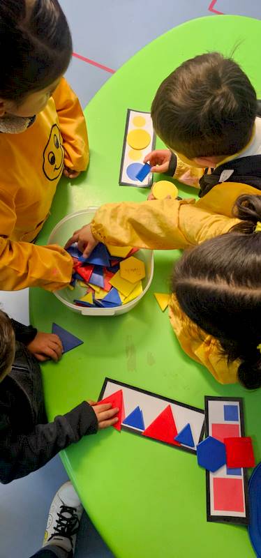 In K1, logic blocks are used as a playful and meaningful way to develop early logical thinking. Through hands-on manipulation of blocks with different shapes, colors, sizes, and thicknesses, three-year-old children strengthen essential cognitive skills such as identifying attributes, classifying objects, visual discrimination, and solving simple problems.