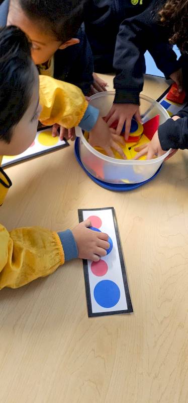 The activities are designed to be sensory and engaging, including free exploration, treasure hunts based on specific characteristics, identifying the “intruder” that does not belong in a group, and completing simple series using visual cards. These experiences encourage children to observe, compare, and reason while playing.