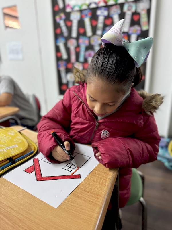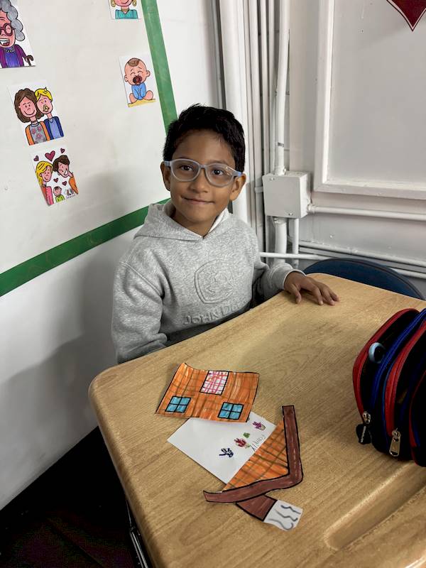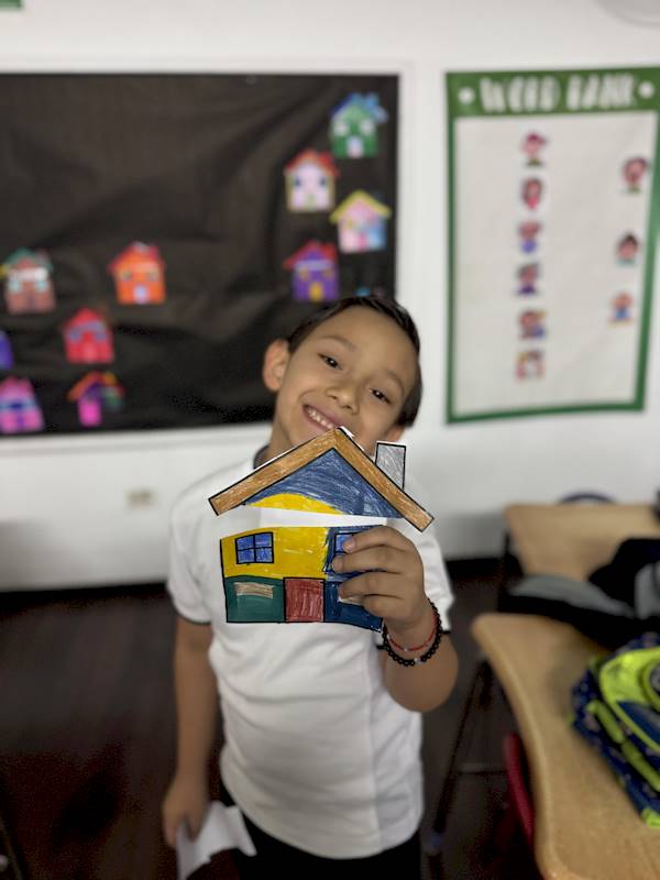 En esta actividad, los alumnos decoraron y recortaron una casa de papel, y dentro dibujaron a los miembros de su familia. Practicaron cómo nombrarlos (papá, mamá, hermana, hermano) y compartieron quiénes viven en su hogar y por qué su familia es importante para ellos.