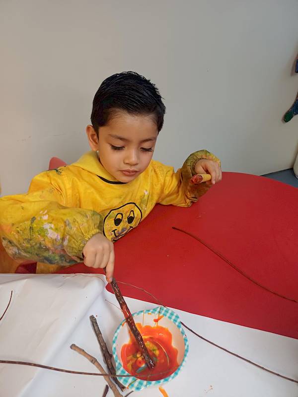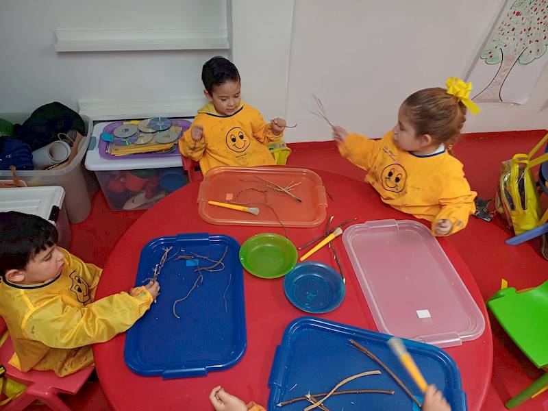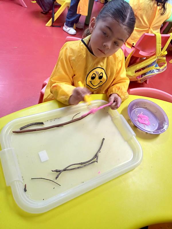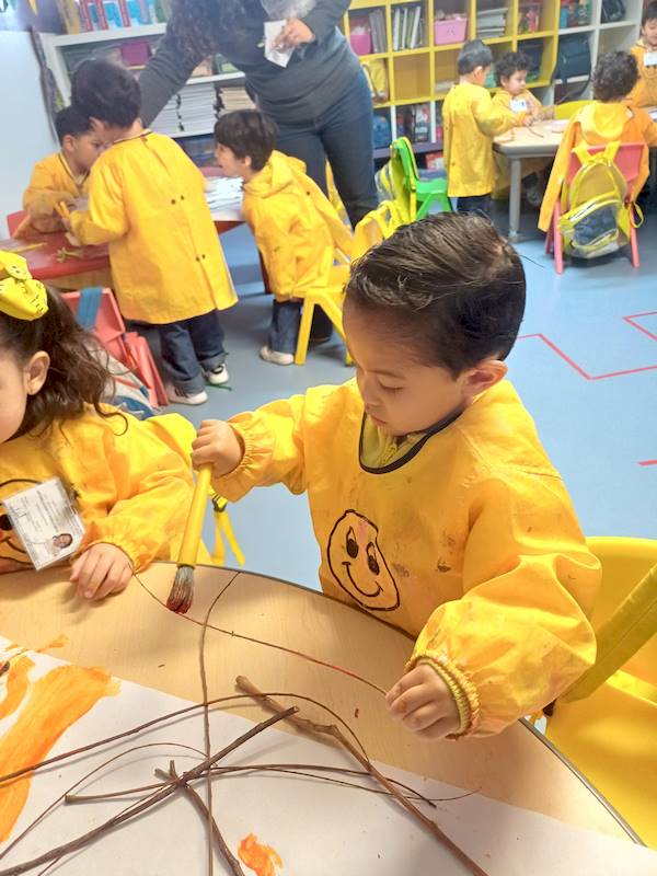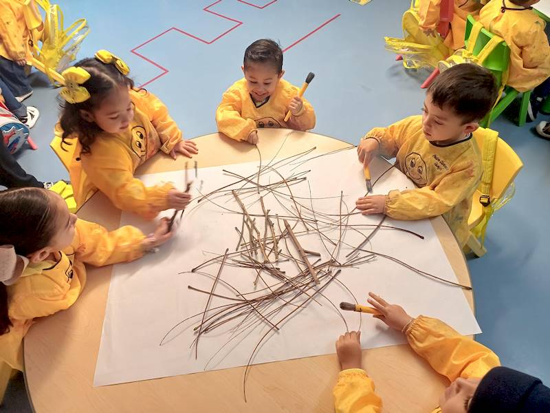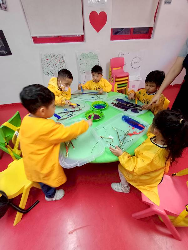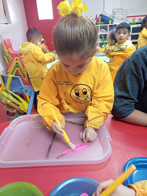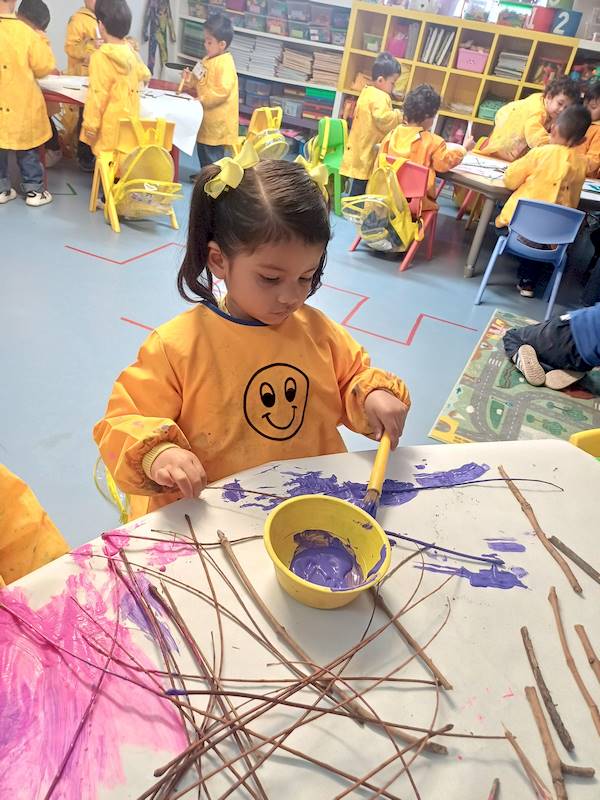 En nuestra clase de Literacy, los niños de K1 pintaron algunos palitos y pequeñas ramas. Lo que comenzó como simples elementos naturales se convirtió rápidamente en obras de arte únicas, despertando entusiasmo e imaginación. Pintar palitos ayuda a fortalecer la motricidad fina, mejora la coordinación ojo-mano y fomenta la creatividad y la autoexpresión. Trabajar con materiales naturales también desarrolla la conciencia sensorial y ayuda a los niños a crear una conexión más cercana con el entorno.