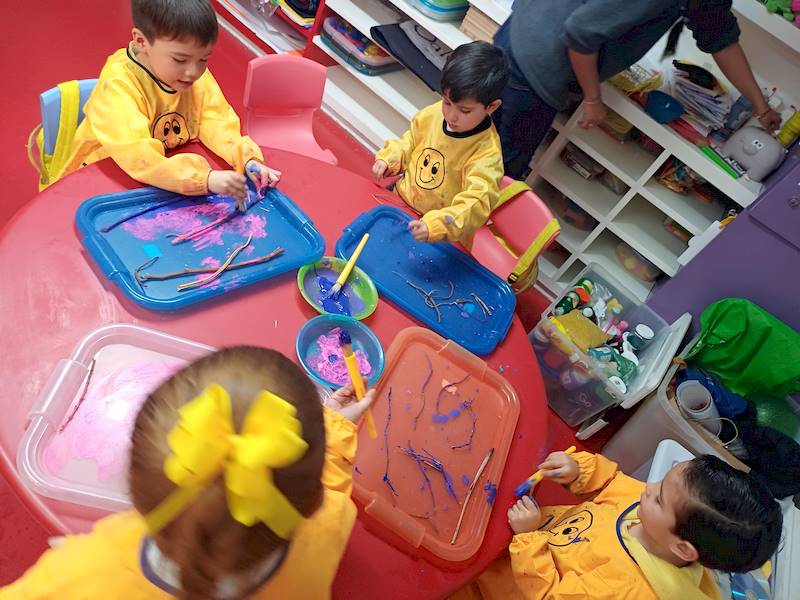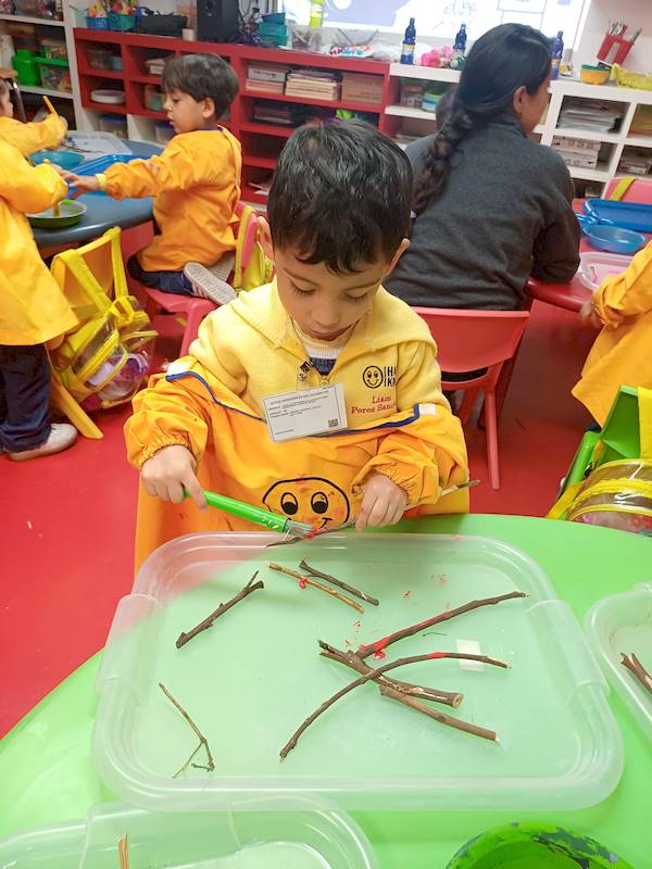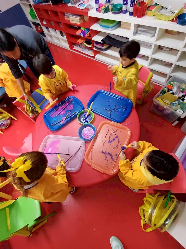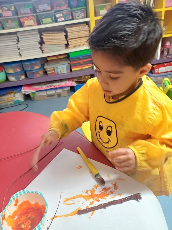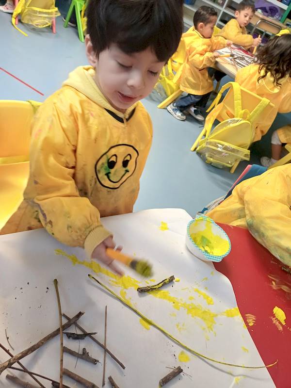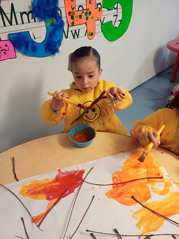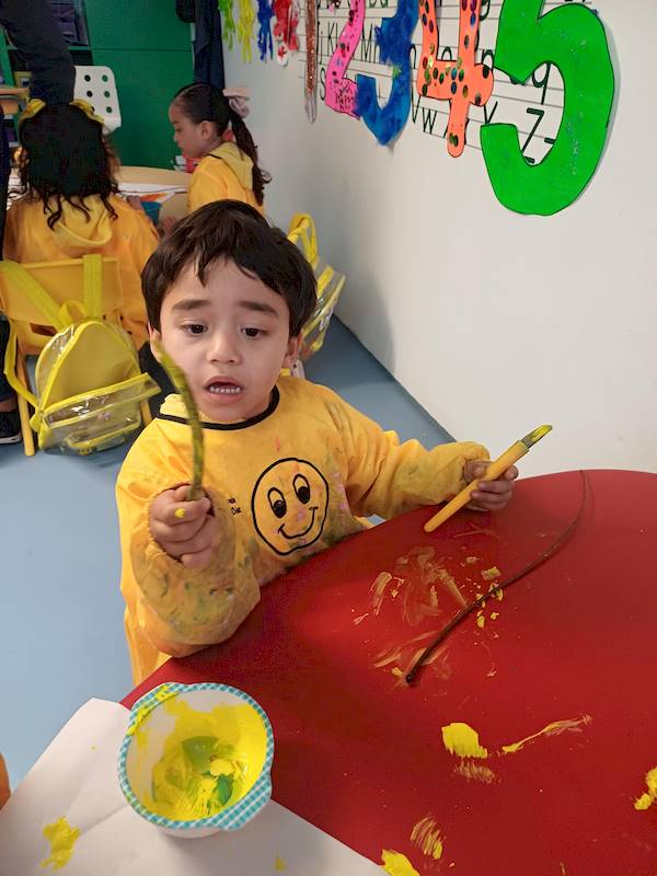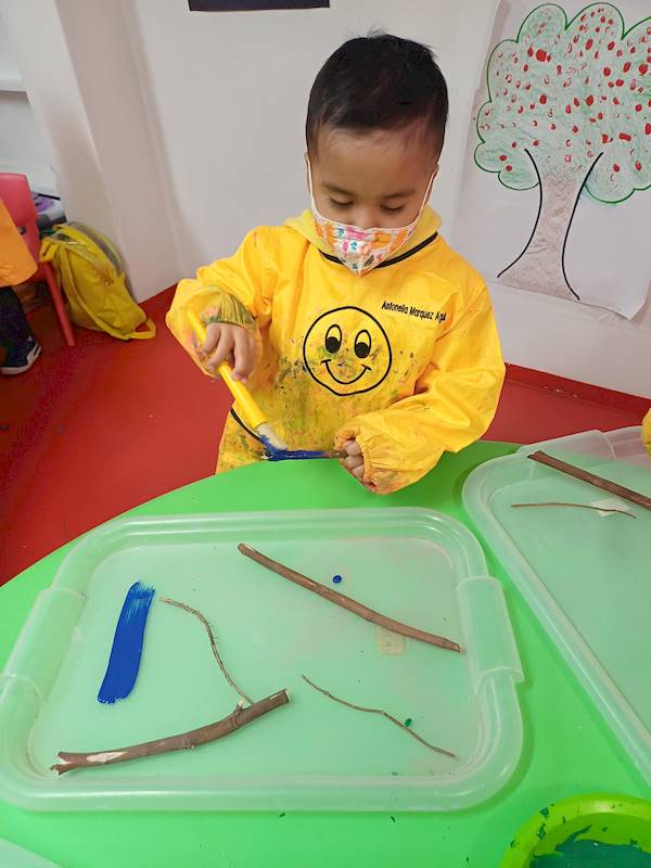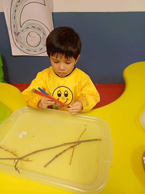 En nuestra clase de Literacy, los niños de K1 pintaron algunos palitos y pequeñas ramas. Lo que comenzó como simples elementos naturales se convirtió rápidamente en obras de arte únicas, despertando entusiasmo e imaginación. Pintar palitos ayuda a fortalecer la motricidad fina, mejora la coordinación ojo-mano y fomenta la creatividad y la autoexpresión. Trabajar con materiales naturales también desarrolla la conciencia sensorial y ayuda a los niños a crear una conexión más cercana con el entorno.