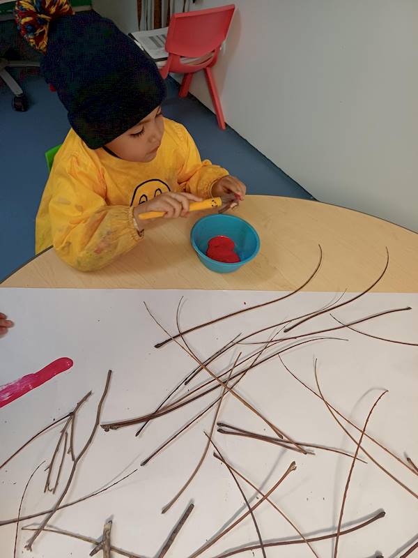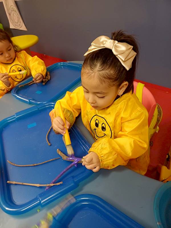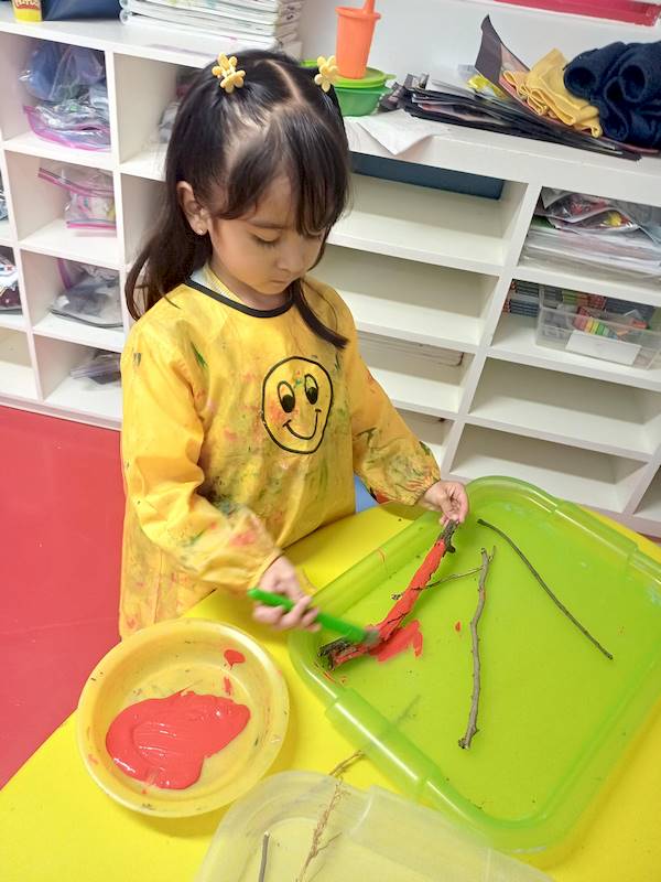 In our Literacy class, K1 kids painted some sticks and small branches. What began as simple natural objects quickly turned into unique works of art, sparking excitement and imagination. Painting sticks help strengthen fine motor skills, improve hand–eye coordination, and encourage creativity and self-expression. Working with natural materials also builds sensory awareness and helps children develop a closer connection to the environment.