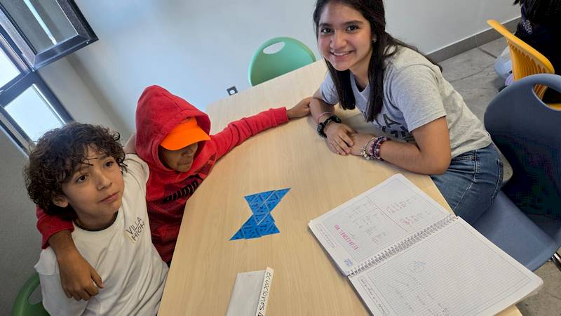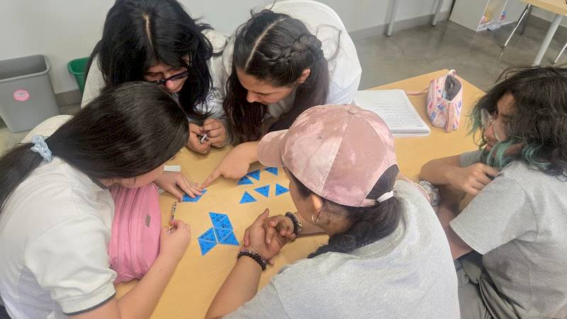 En la clase de matemáticas alumnos de primer grado vieron el tema de ecuaciones lineales. Los alumnos refuerzan el tema con rompecabezas y la aplicación de Blooket.