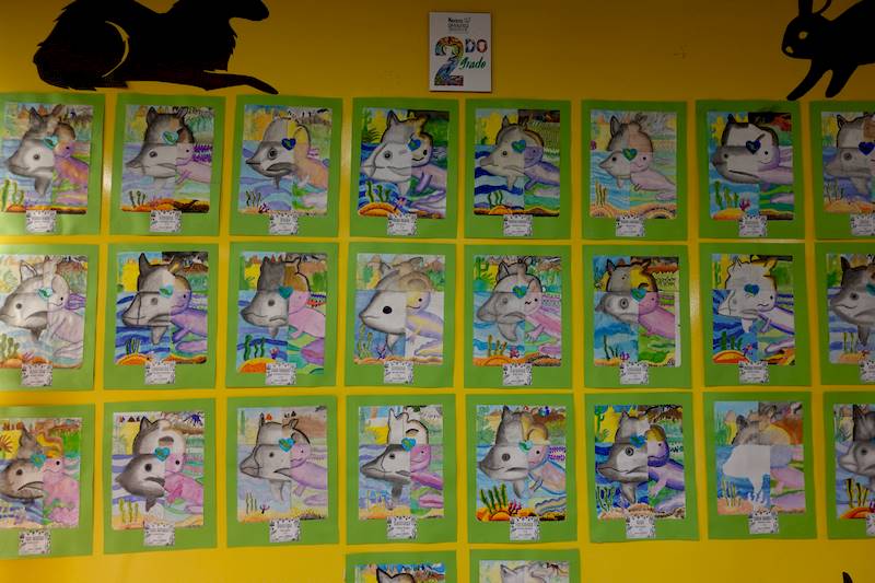 In the Visual Arts Workshop, students from all three grades have worked for the past 6 weeks on a very important project: MEXICO’S ENDANGERED WILDLIFE. Teacher Robert Borges chose 4 highly endangered species for this art project: The Axolotl, The Mexican Gray Wolf, The Teporingo and The Vaquita Marina; animals all endemic to Mexico.
