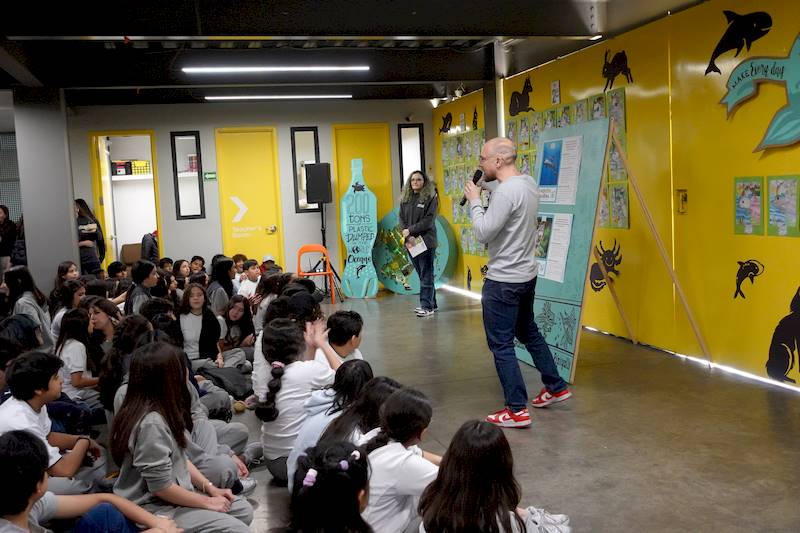 All 75 students from the workshop followed teacher Robert’s instructions step by step to create a “surreal” masterpiece which included all 4 animals. The project also included each animal’s habitat and how us humans contribute to its damage and possible extinction. Teacher Robert gave his students general information about each animal and explained the different techniques used in the project: watercolor, pointillism with markers and charcoal.