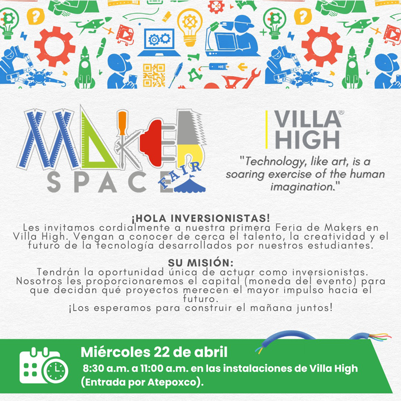 Les extendemos una cordial invitación a nuestro evento Makers Fair, que se llevará a cabo de 8:30 a.m. a 11:00 a.m. el miércoles 22 de abril.