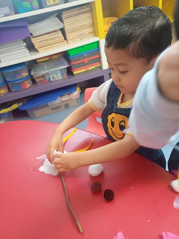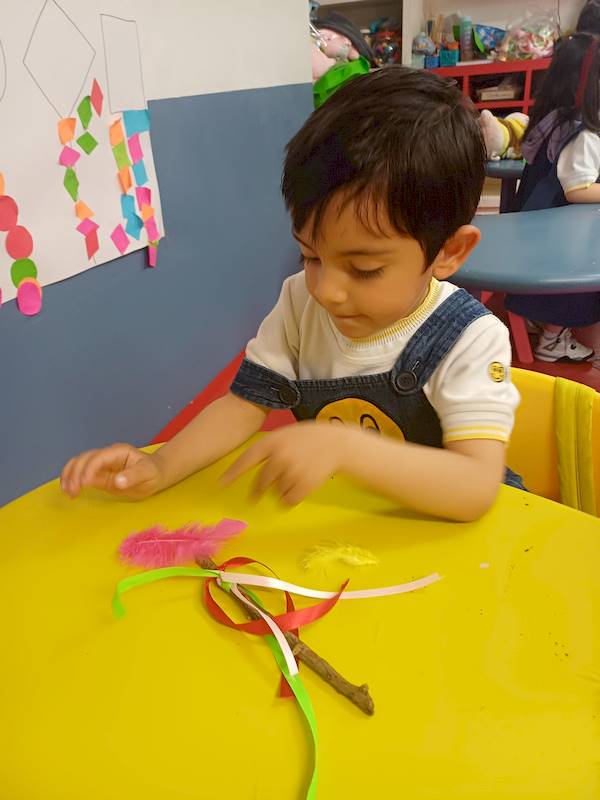 Using a variety of materials such as ribbons, pompoms, and feathers, the children decorated their sticks to reflect their unique ideas and personalities. As they worked, they shared what their stick could become: a wand, a sword, a fishing pole, or even something entirely new.