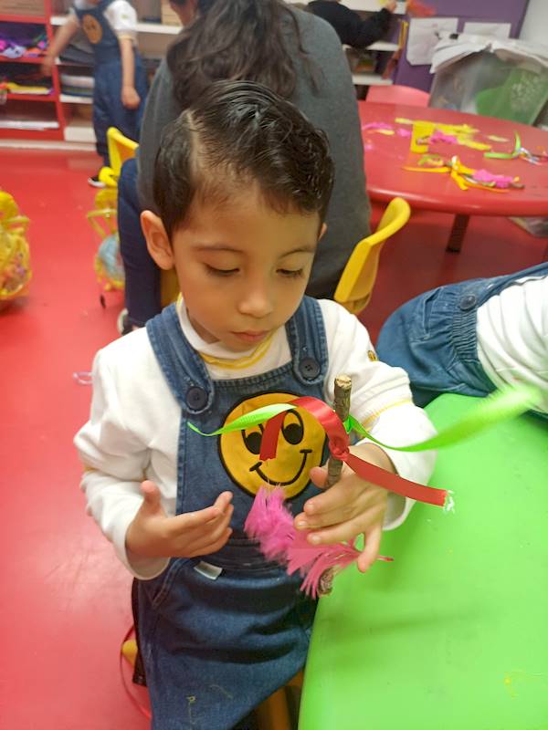Utilizando una variedad de materiales como pintura, listones, brillantina y calcomanías, los niños decoraron sus palos reflejando sus ideas y personalidades únicas. Mientras trabajaban, compartían en qué podía convertirse su palo: una varita, una espada, una caña de pescar o incluso algo completamente nuevo.