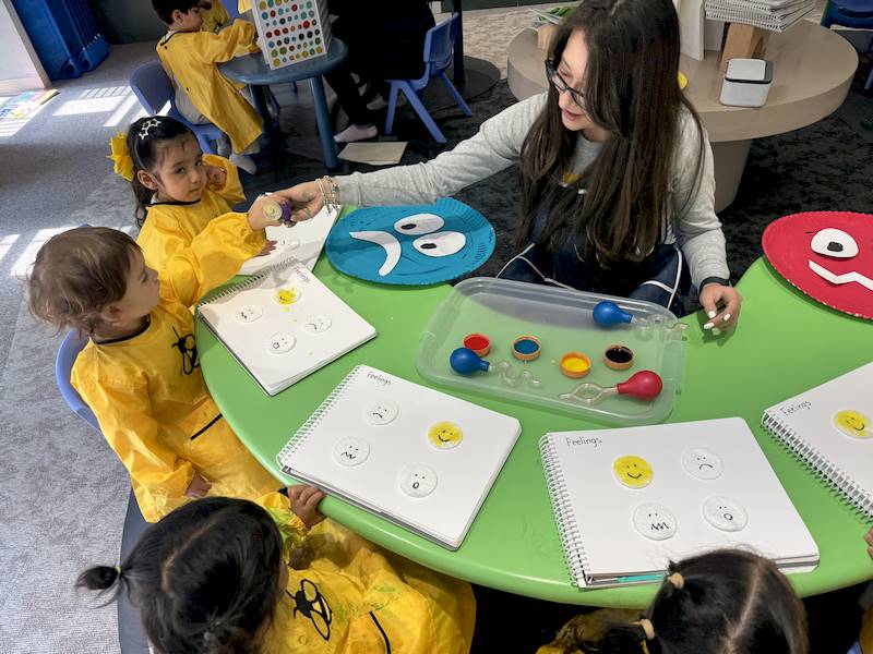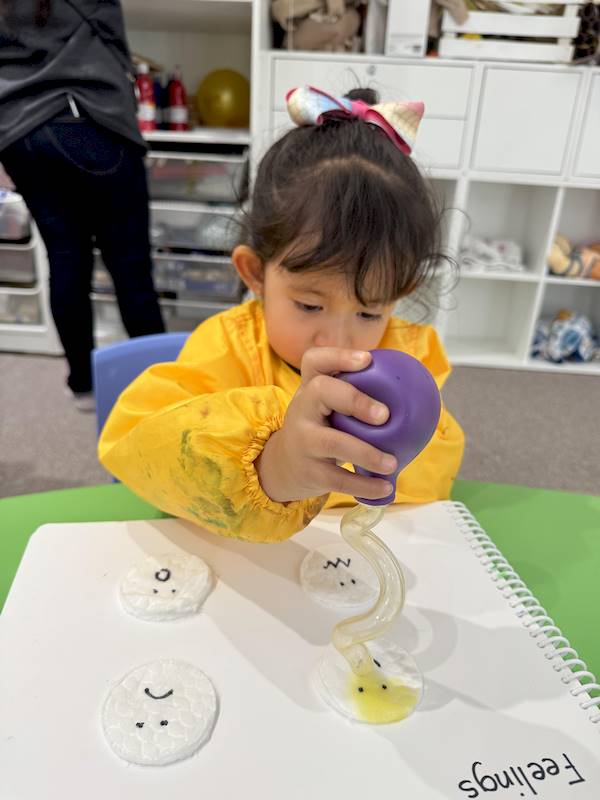 This week, our little ones explored basic emotions through songs, visuals inspired by The Color Monster, and role play. They created their own emotion monsters and used paint with droppers to represent feelings with colors, beginning their journey in emotional awareness.
